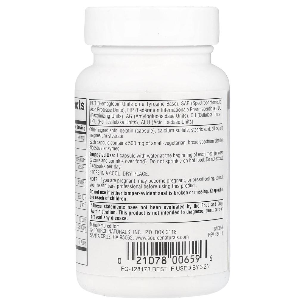 Ингредиенты: Желатин (капсула), сульфат кальция, стеариновая кислота, диоксид кремния, стеарат магния. Каждая капсула содержит 500 мг нашей пищеварительной ферментной смеси широкого спектра действия, подходящей для всех вегетарианцев.