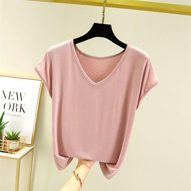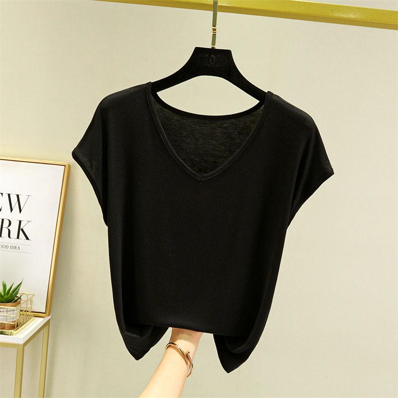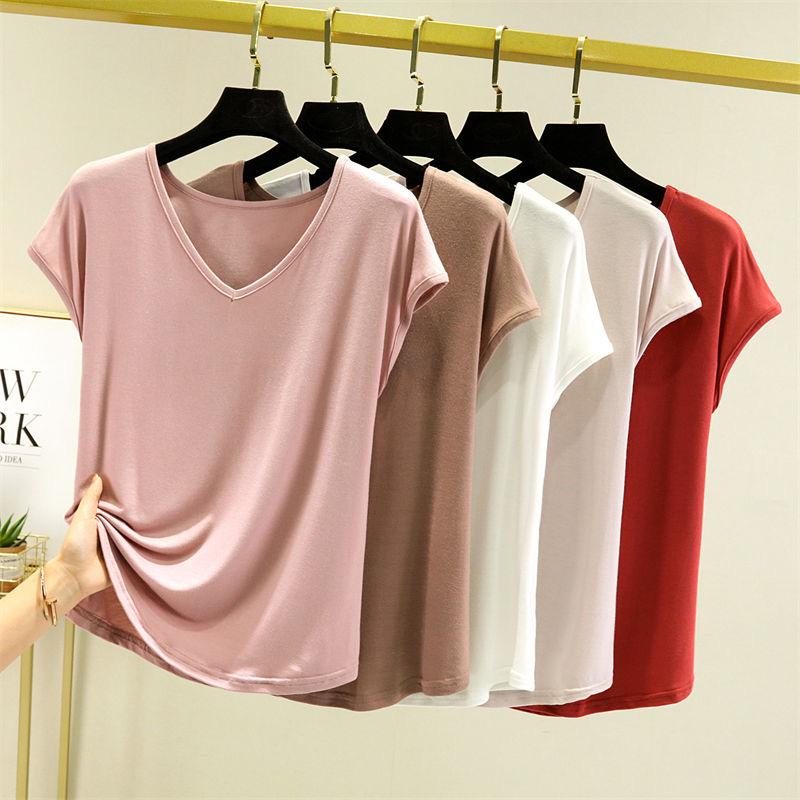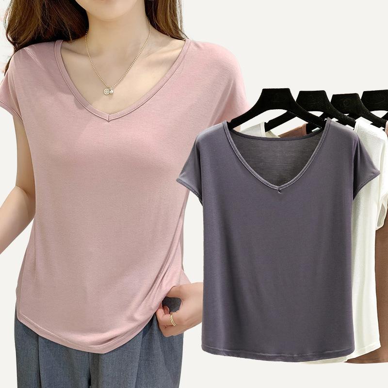 Женские летние футболки однотонные с V-образным вырезом базовая футболка модальная свободная футболка топы повседневная майка