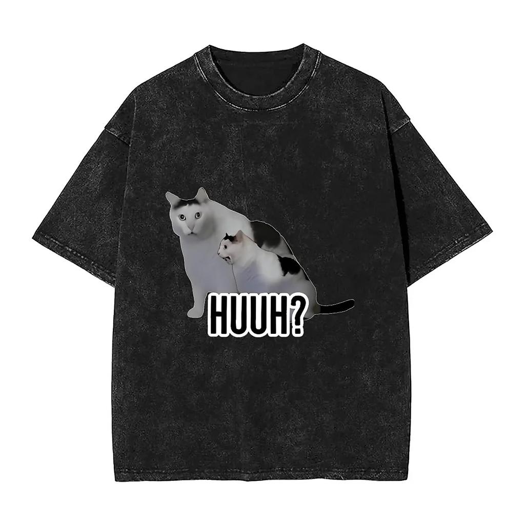 Хм Футболка с котом Мем Забавная Новинка Футболки с коротким рукавом Y2K Веселые топы Летний Простой Круглый вырез Большой размер Топ Футболки