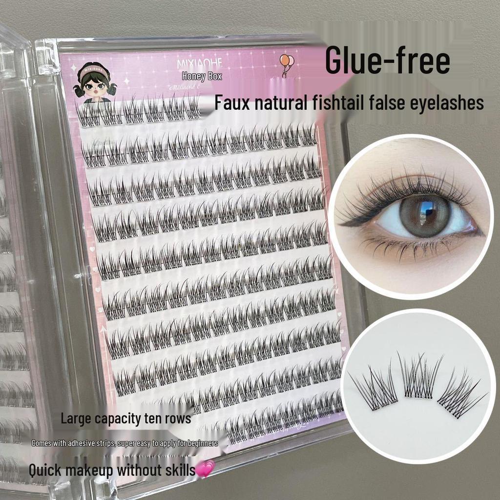 Медовая коробочка Макияж без макияжа Прозрачная лента Рыбий хвост Мягкие накладные ресницы (Бесклеевой, Большая вместимость)