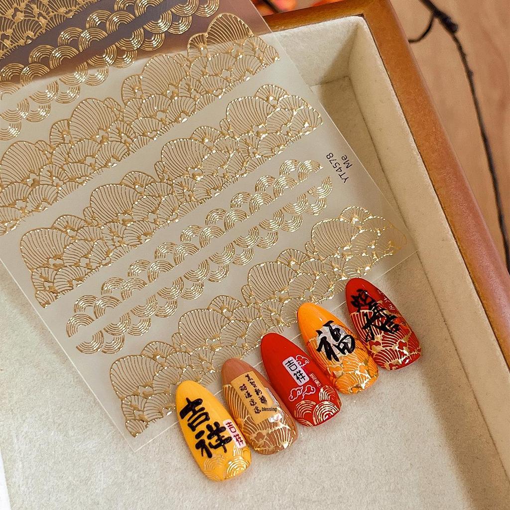 YITU Hot Stamping Nail Stickers, Light Luxury Chinese Style, Hollowed-Out Lines, Self-Adhesive Nail Art Decals YT4578.