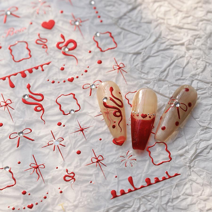 TENSOR Ферритовые наклейки для ногтей в стиле змеи, самоклеящиеся - Изысканная серия ювелирных изделий для ногтей TL306 (Горячий красный)