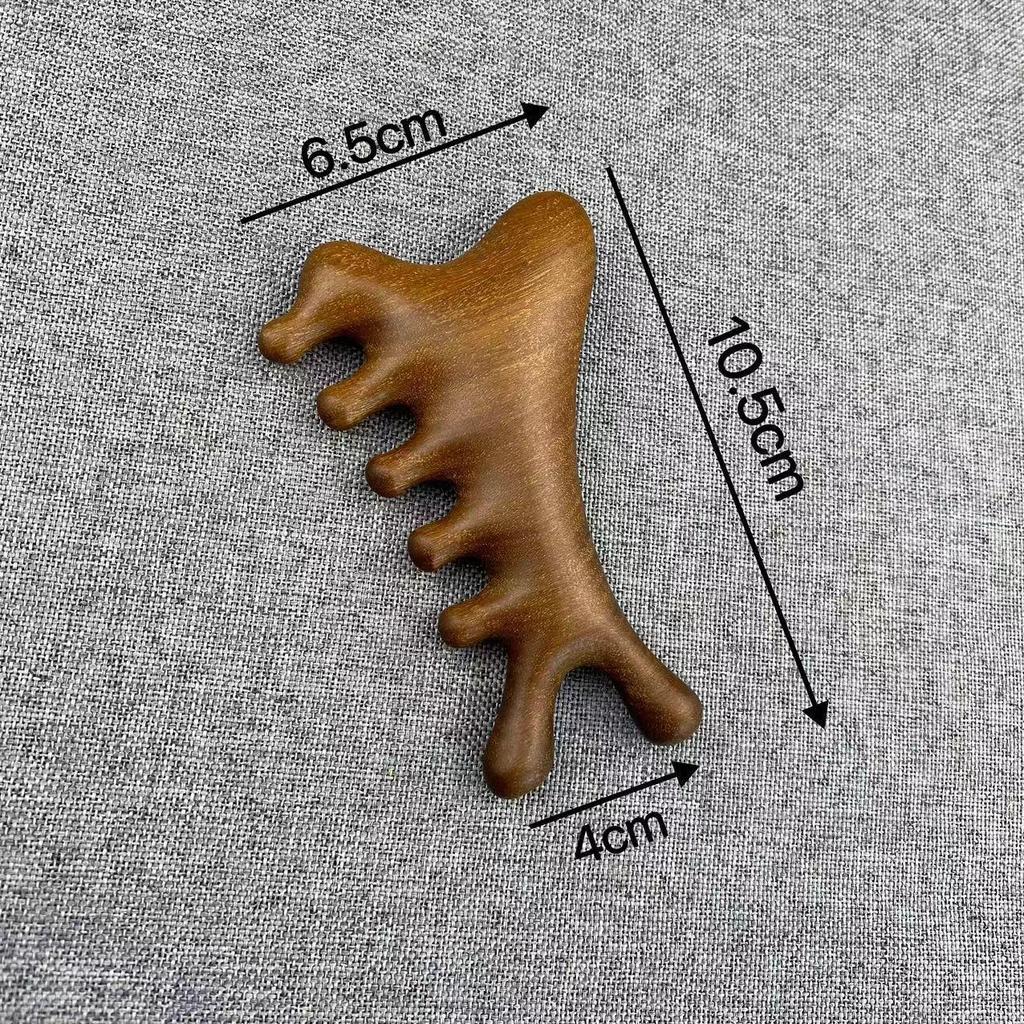Sandalwood Meridian Massage Comb: 4-in-1 Gua Sha, Scalp Massage, and Acupoint Pressure Tool.