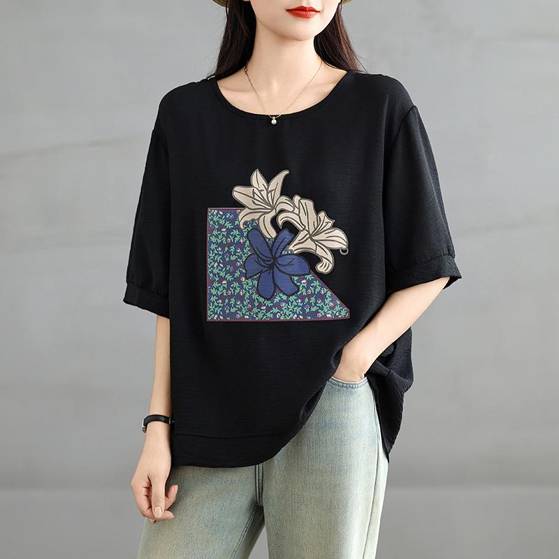 DIMANAF 2025 Летняя Футболка Большого Размера с Принтом Оверсайз Женская Свободная Майка Повседневная Новая Футболка