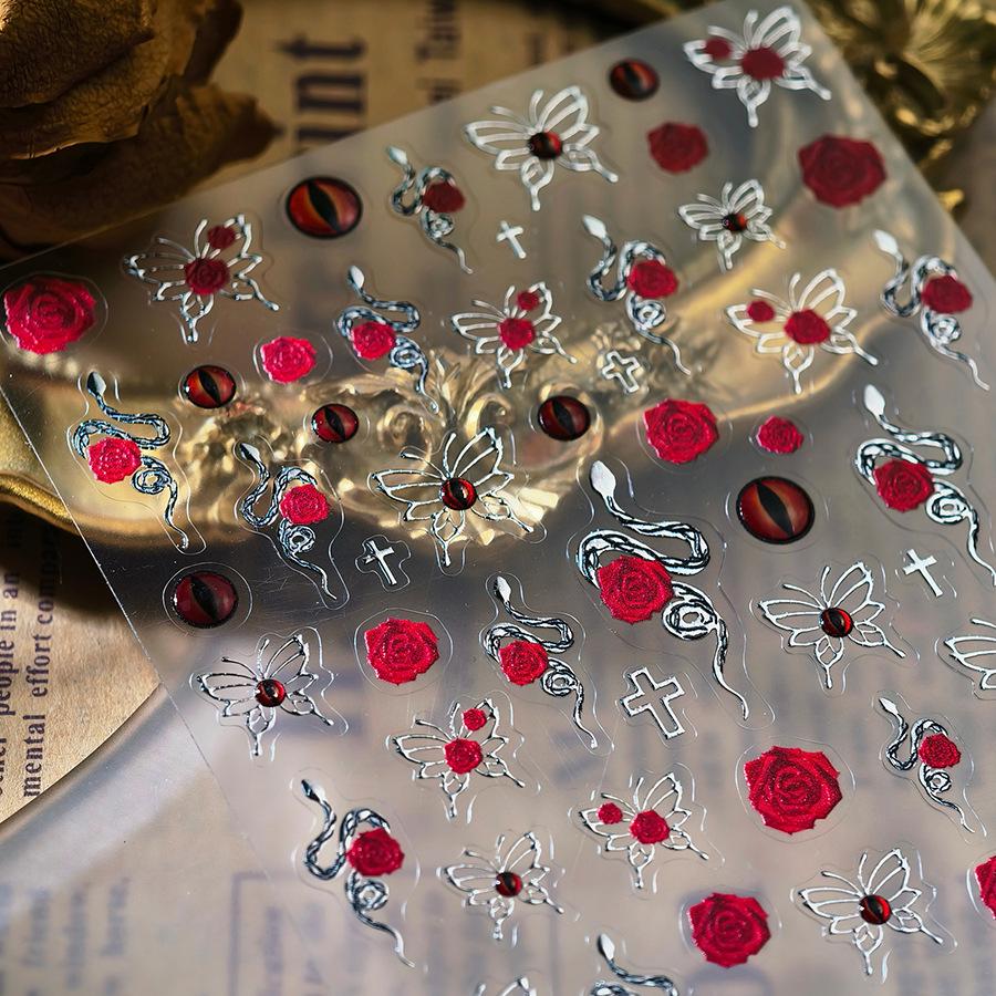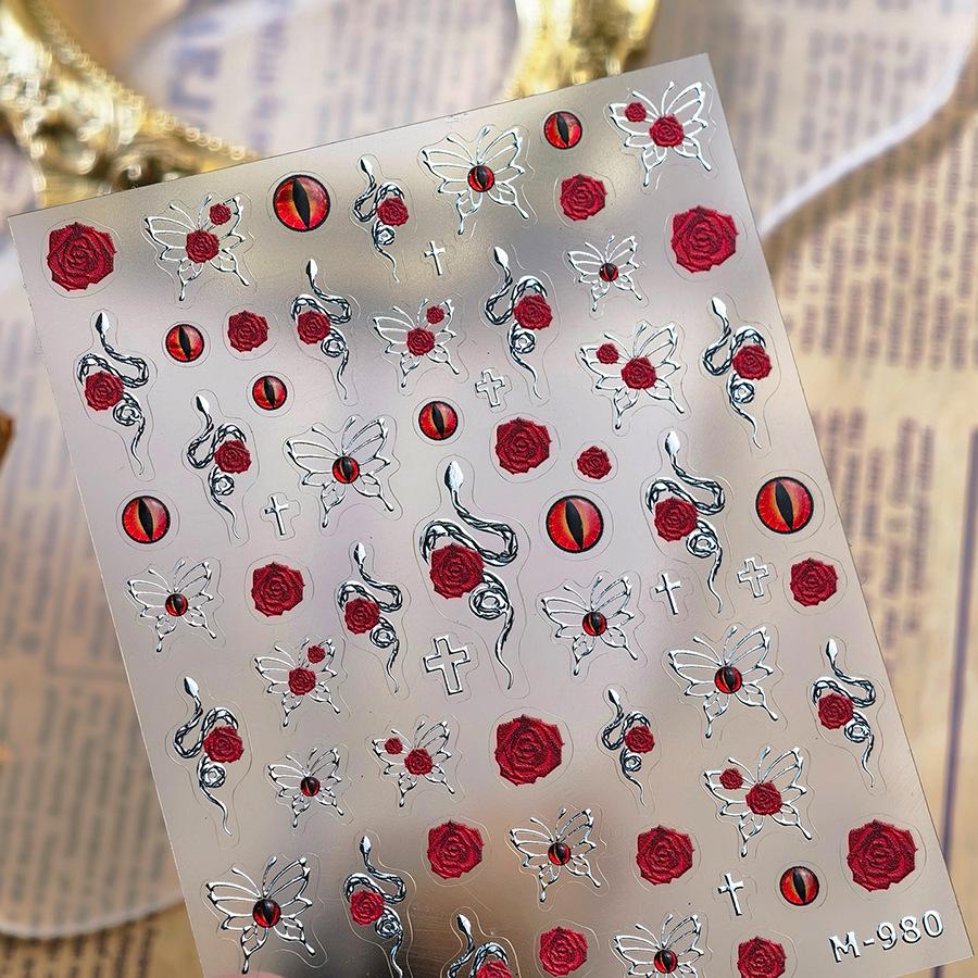 Ферритовые наклейки для ногтей горячего тиснения M980 из битого стекла - Серия "Красная роза и желе"