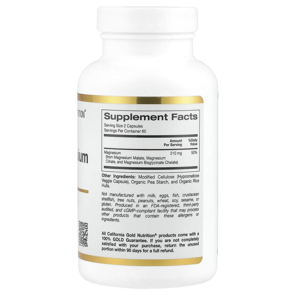 Тройной магниевый комплекс, малат, цитрат, хелат бисглицината, 120 вегетарианских капсул (105 мг/капсула)