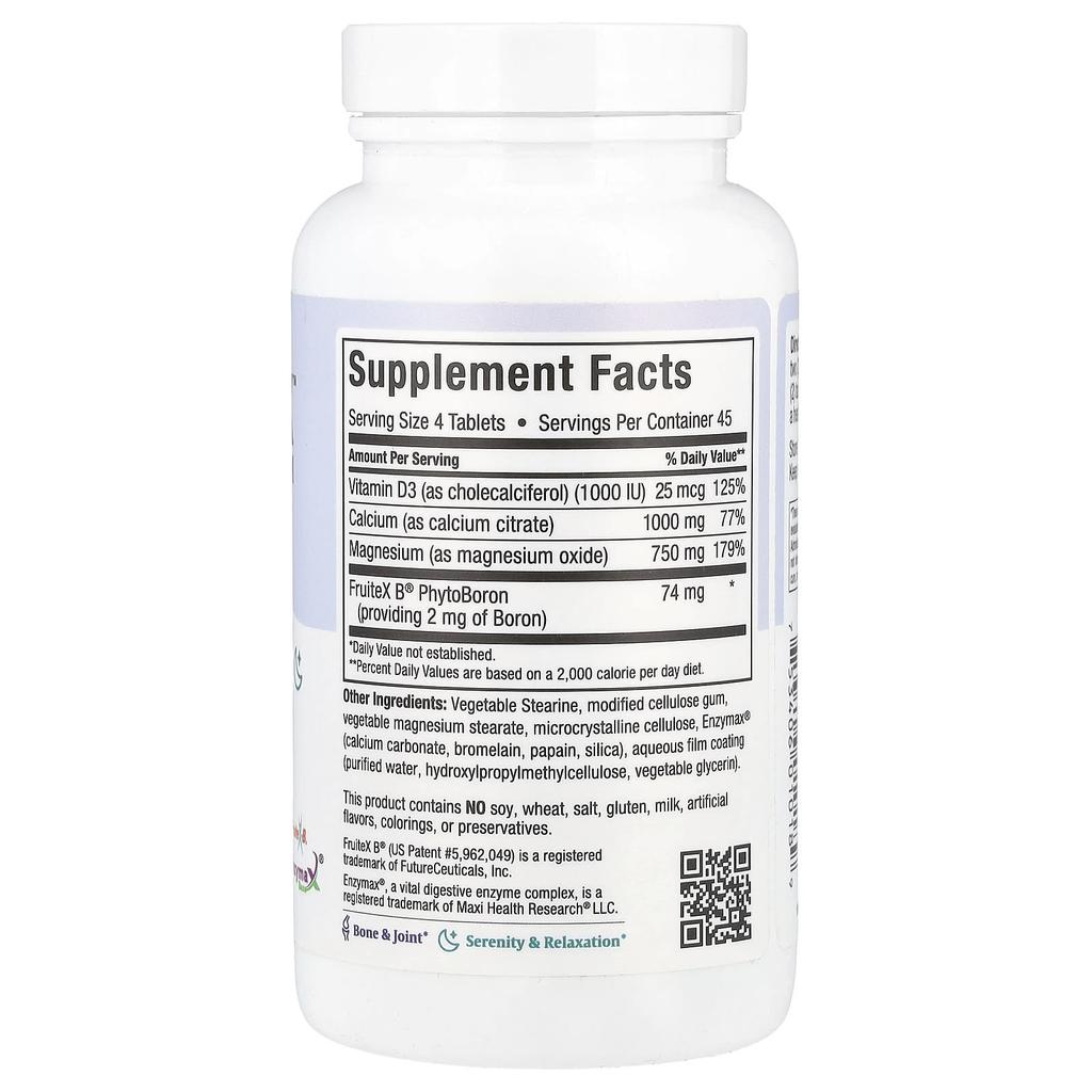 Описание товара: Добавка для костей и суставов Высокоусвояемый цитрат кальция Кошерный Поддержка на расстоянии вытянутой руки Без ГМО Халяль Сертифицировано Total Wellness™ Fruit-B® Основа энзимов® Отдых и расслабление Формула, разработанная врачом Maxi Health Research® сочетает цитрат кальция с магнием, витамином D3 и бором. Эта добавка — то, что вы искали. Cal-Max™ использует кальций в форме цитрата кальция, который включен для лучшей биодоступности. Кальций является самым распространенным и важным из всех питательных веществ. По мере того как ваше тело выполняет свои повседневные функции, оно постоянно теряет кальций.. Все мы знаем, что костям нужен кальций, но кости живые. Материал, из которого состоит кость, постоянно обновляется на протяжении всей жизни.. Это называется ремоделированием. Если ремоделирование не происходит в своем естественном цикле, могут возникнуть переломы и деформации костей.. Кальций также необходим для сокращения мышц, стимуляции нервов и ферментативной активности.. Cal-Max™ использует тот же витамин D3 (холекальциферол) что вы бываете на открытом воздухе на солнечном свете. Самая доступная форма для человеческого тела. Многие люди больше не получают достаточно солнечного света. При плотном расписании в помещении, религиозных дресс-кодах и предрасположенности к кожным проблемам, добавки быстро становятся основным способом для адекватного потребления витамина D.. Магний необходим для многих целей. Насколько полезно принимать магний и кальций без них? Для тех, кто хочет принимать бор, кальций и магний вместе, Cal-Max предлагает это.