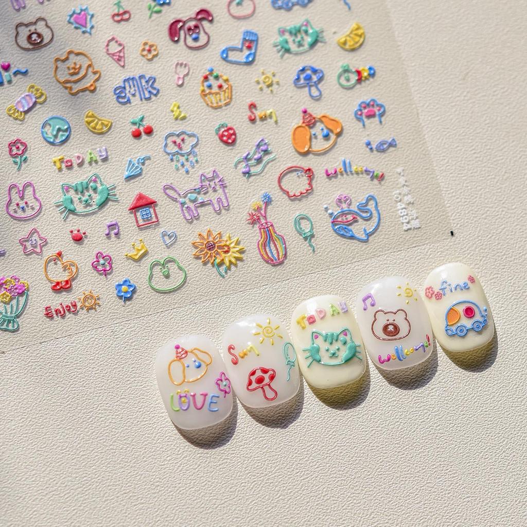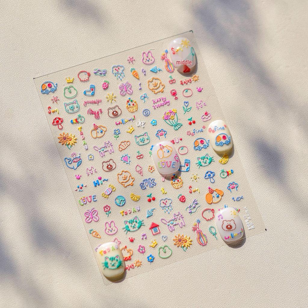 Милые 3D наклейки для дизайна ногтей с тиснением: Бестселлер Японские Канцелярские Товары Аксессуары для Граффити.