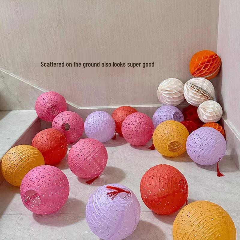 Светящийся сотовый шар и бумажный фонарик для украшения свадебной комнаты