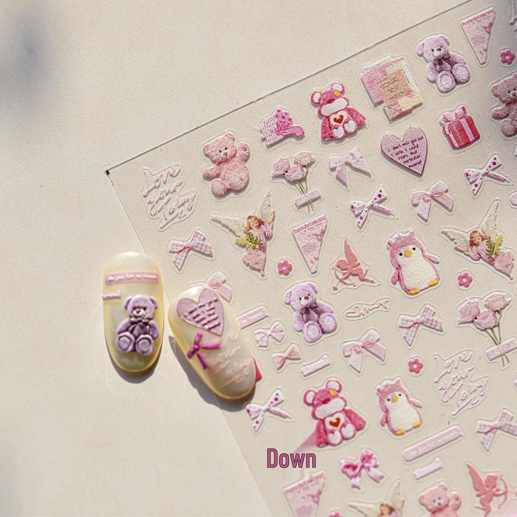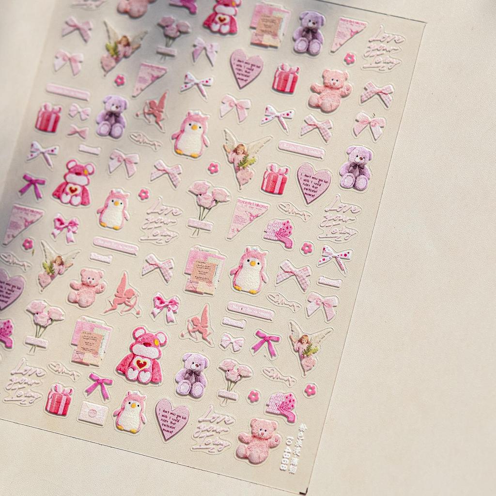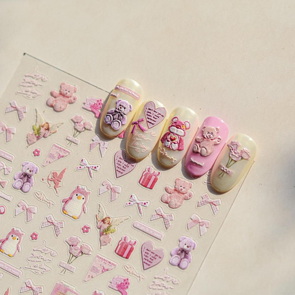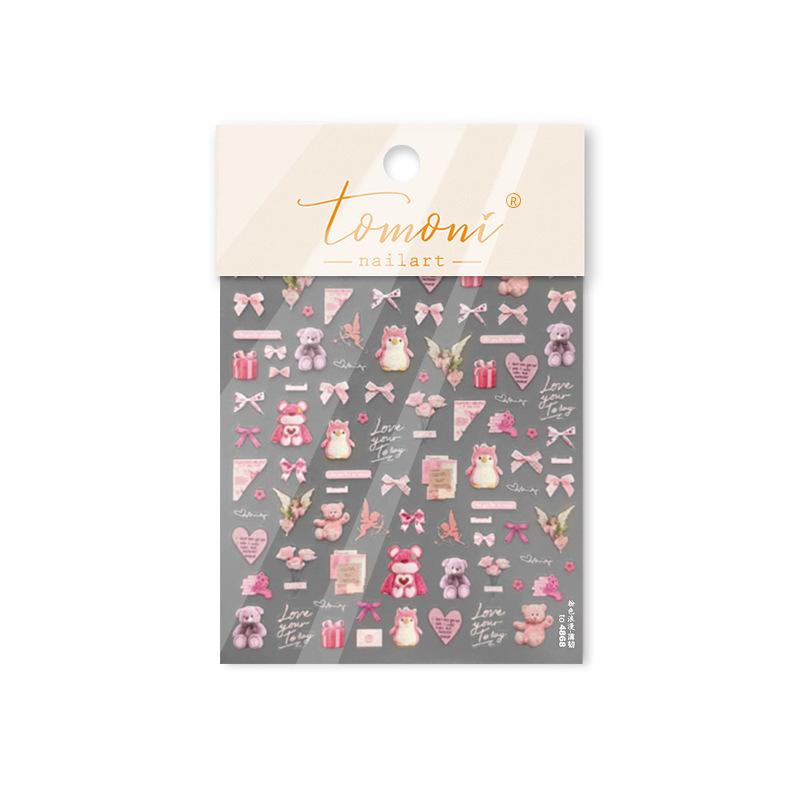 Наклейки для ногтей Tomoni Милый розовый медведь - Прочный японский нейл-арт для детей