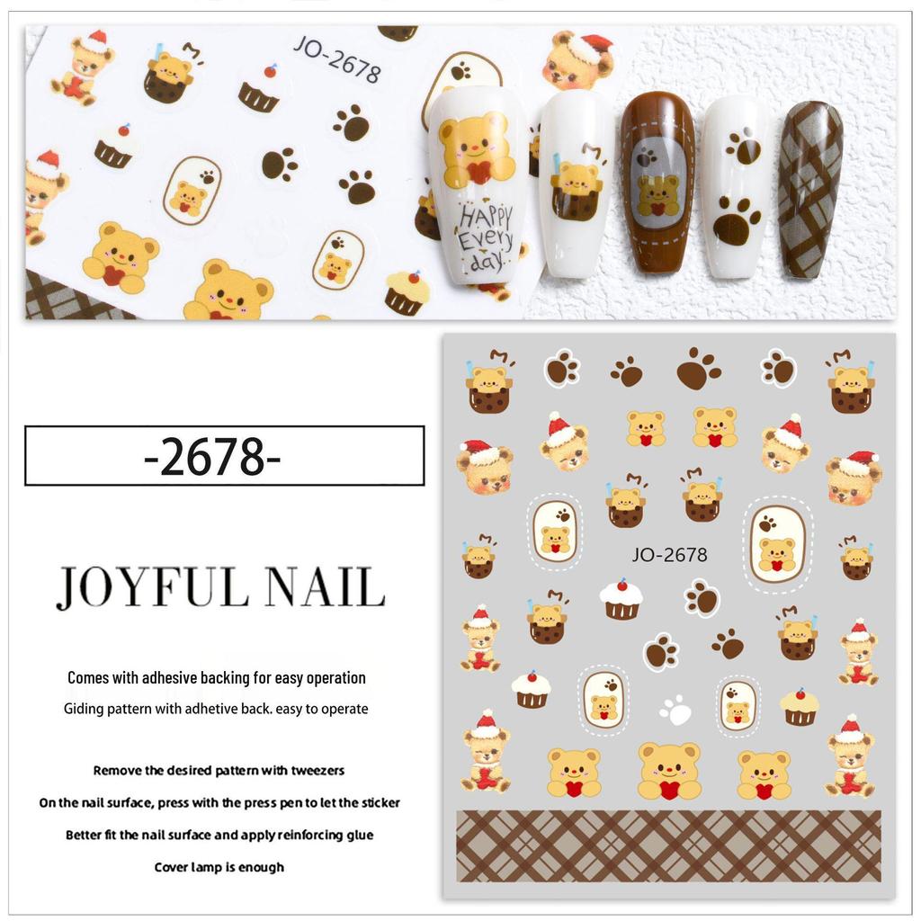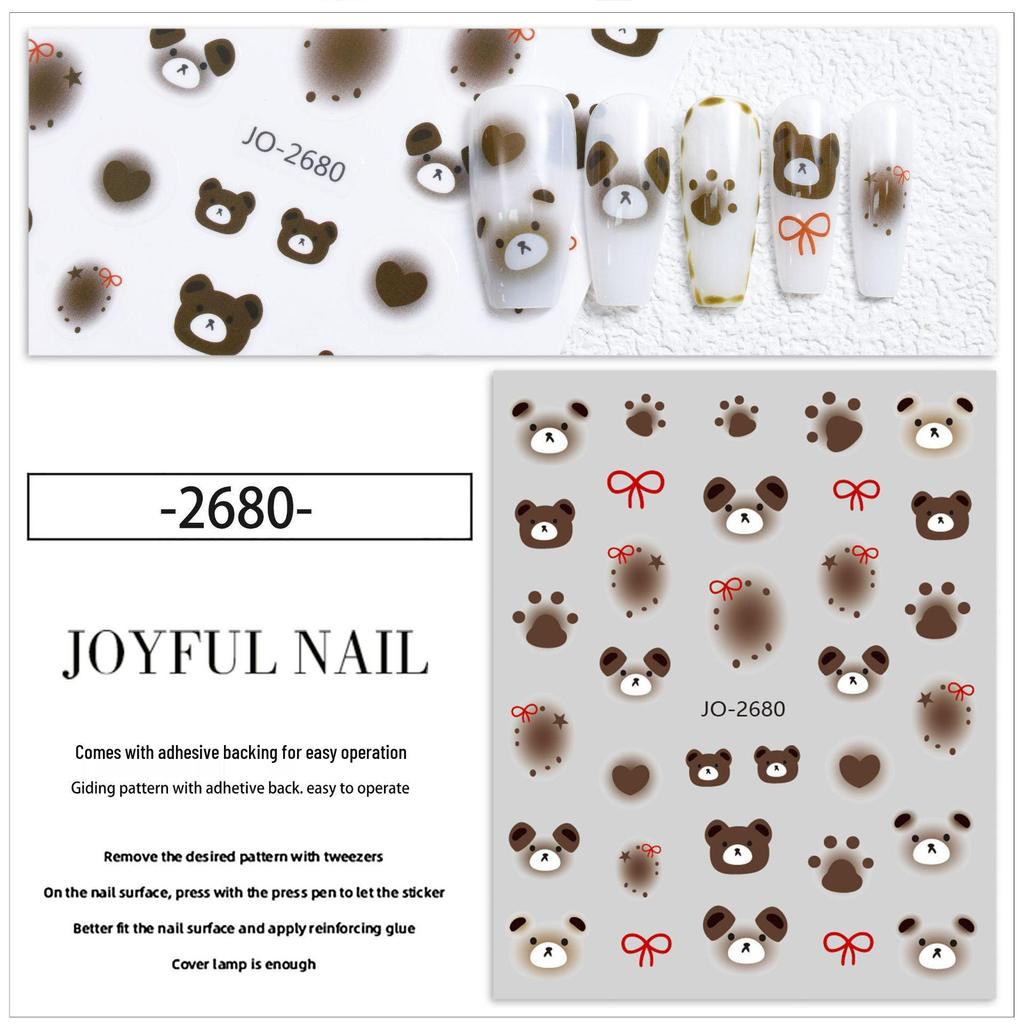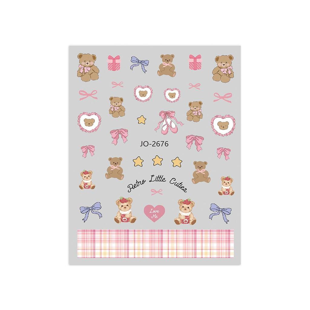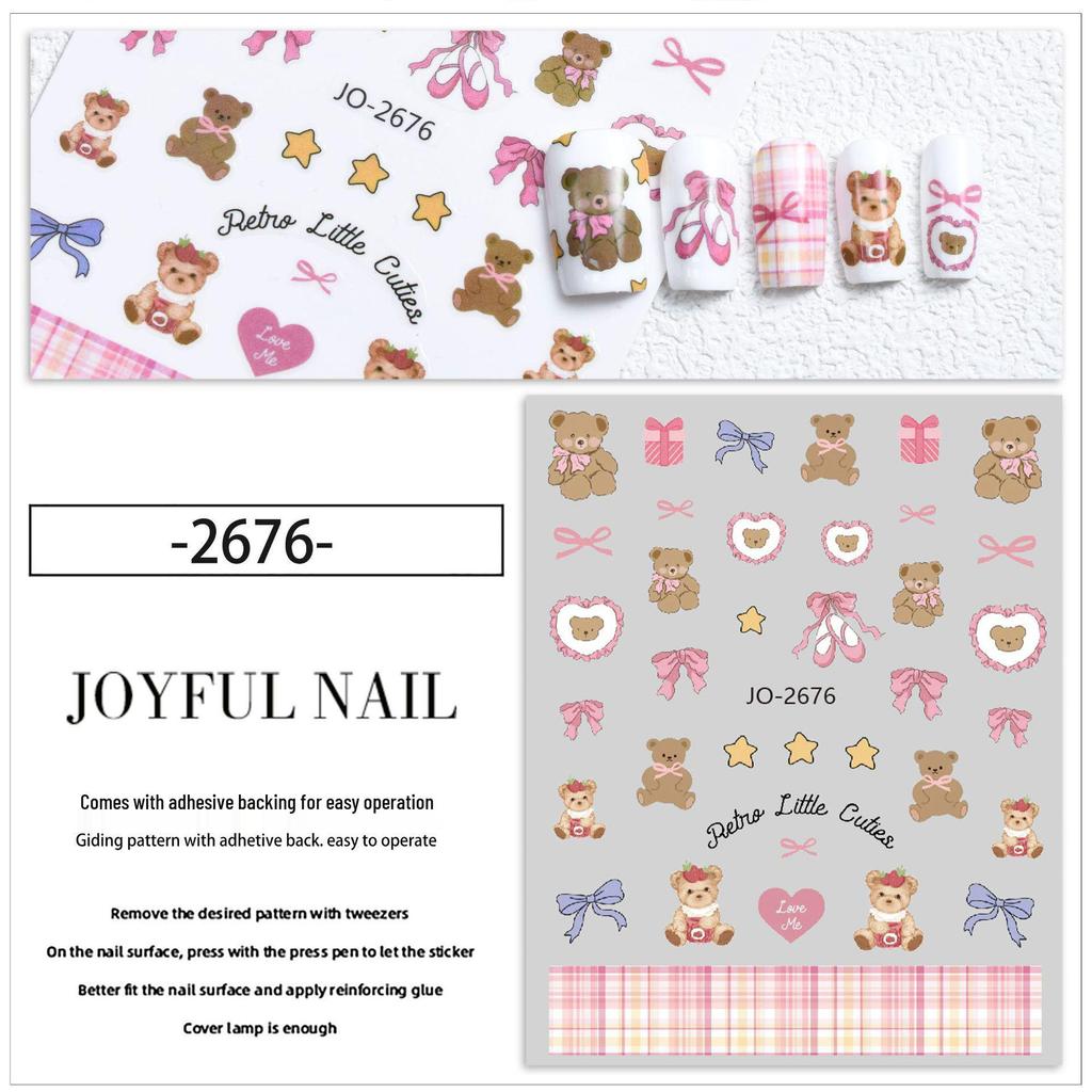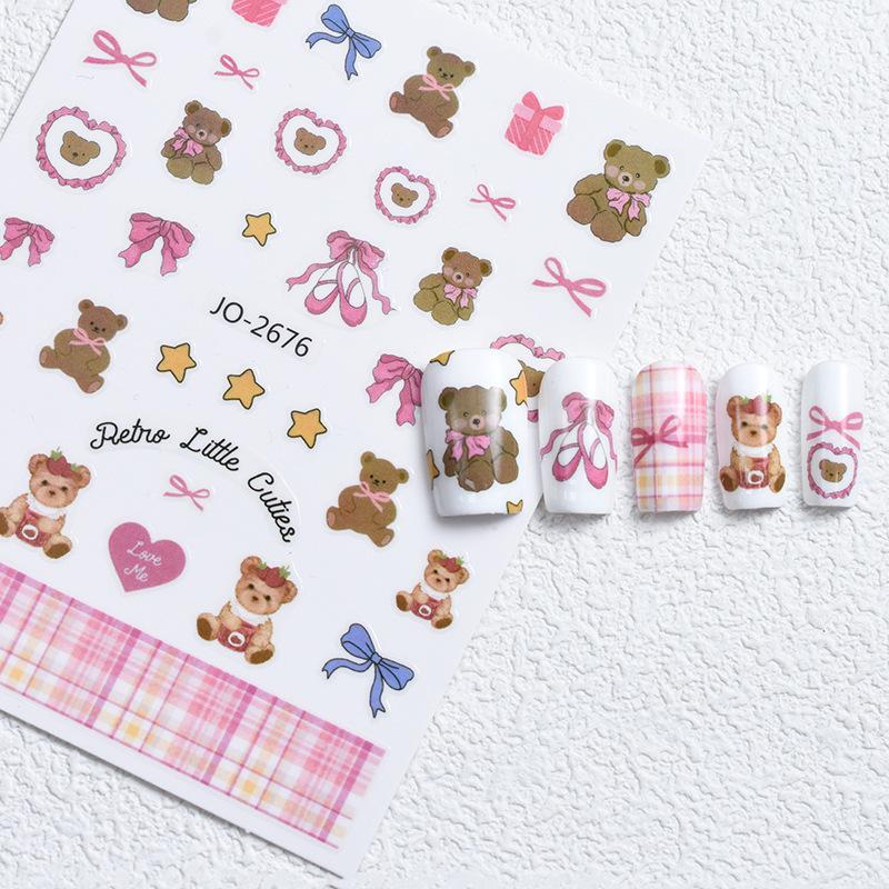 Милые наклейки для ногтей с бантиками и медведями, расписанные вручную