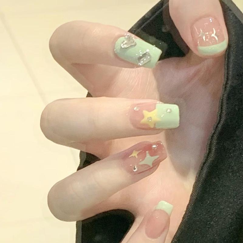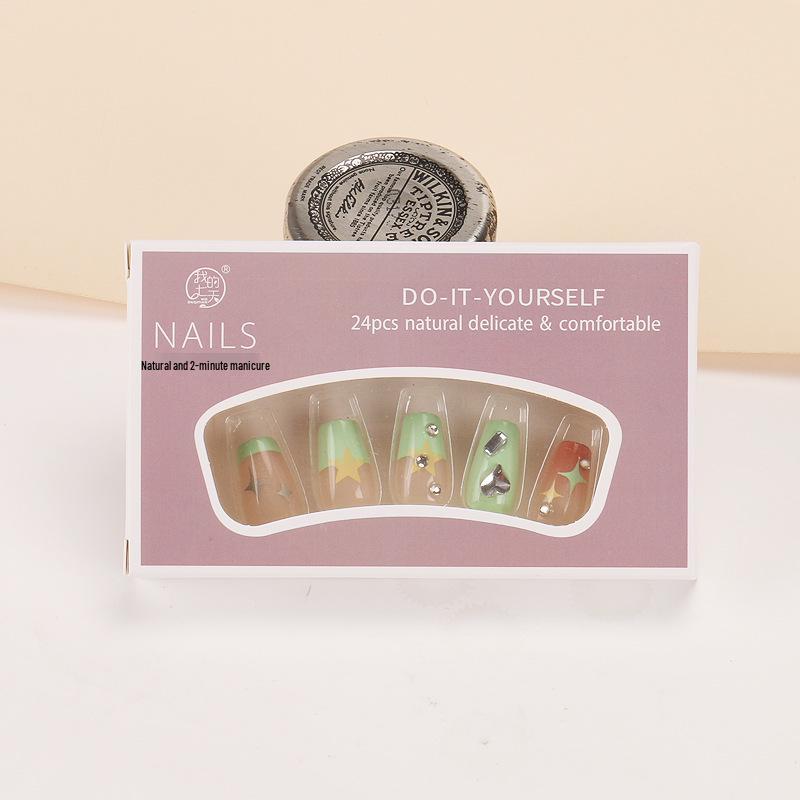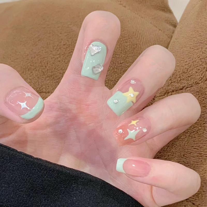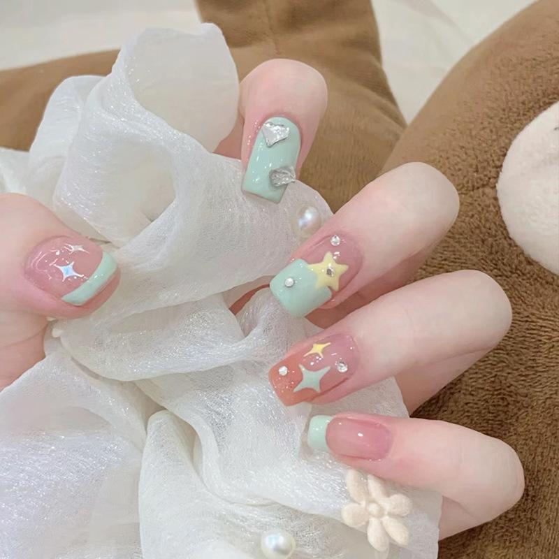 Милые мультяшные короткие ногти-типсы гробовидной формы - Съемные дофаминовые маникюрные типсы