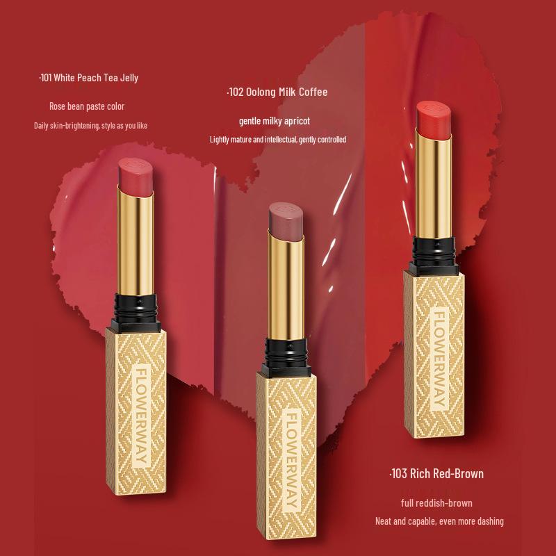 FLOWERWAY Стойкая увлажняющая помада - Шелковистая, Увлажняющая, Стойкая к выцветанию, Отбеливающий золотой блеск для губ.