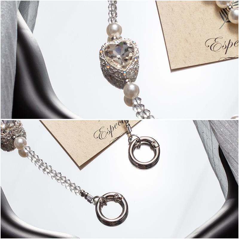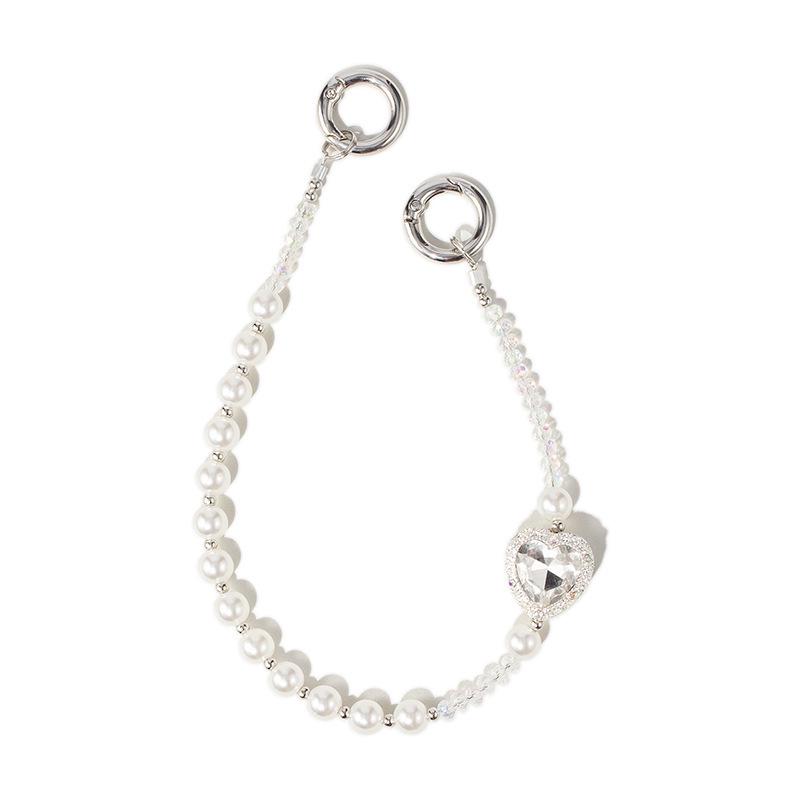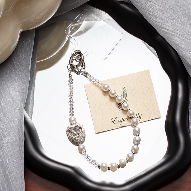 Белый браслет на запястье для мобильного телефона с бусинами из жемчуга в форме сердца и блестками