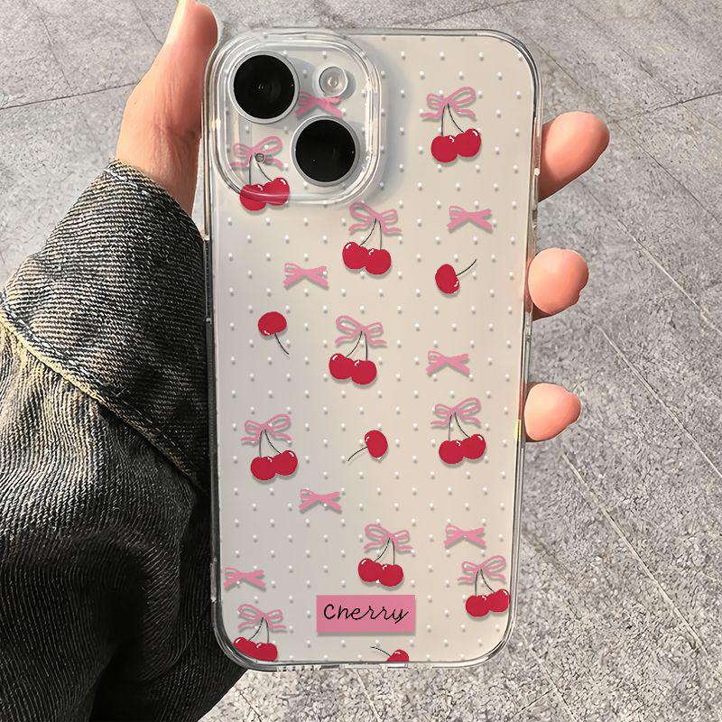 Этот элегантный чехол для смартфона предлагает шикарное сочетание стиля и защиты для вашего iPhone. Изготовлен из высококачественного ТПУ. (термополиуретан), он обеспечивает прочную, но гибкую посадку, защищая ваше устройство от повседневных ударов и царапин. Дизайн украшен восхитительным вишневым мотивом, дополненным прозрачным бантом, что придает вашему телефону нотку причудливости и изысканности.. Он идеально подходит для тех, кто хочет сочетать функциональность с игривой, стильной эстетикой.