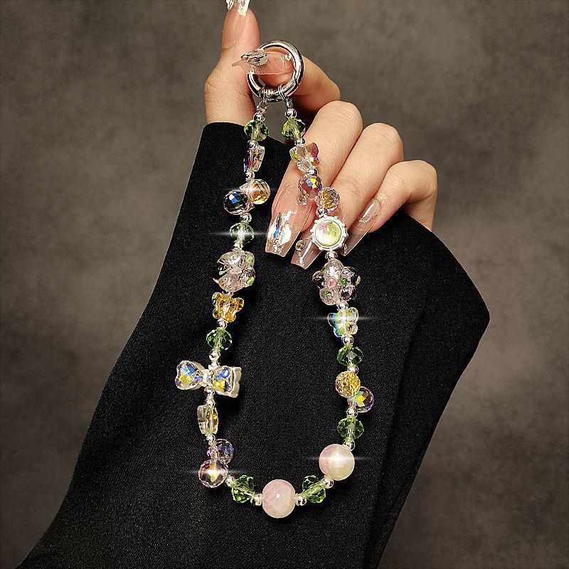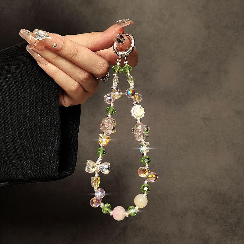 Креативный браслет-подвеска с цветами и бусинами: Короткий шнурок с клипсой для телефона, брелок для ключей или подвеска для сумки - Женский тренд