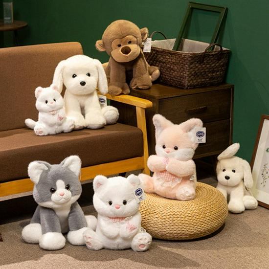Милая плюшевая кукла в виде животного: Лиса, Кот, Обезьяна, Кролик, Собака - Сидячая поза, Комфортная игрушка, Подарок
