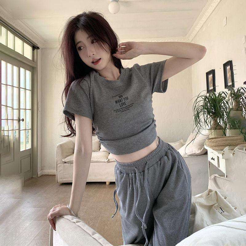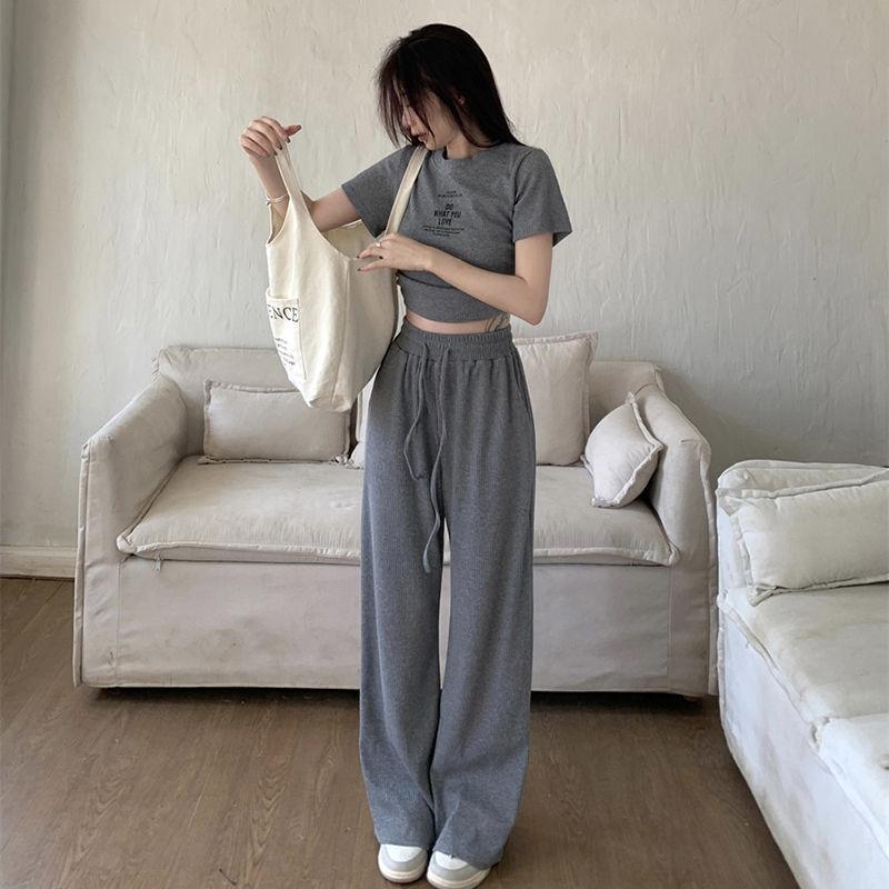 Маленький ароматный стиль Короткий с коротким рукавом Тонкий Повседневный костюм для женского лета Новый темперамент Широкие брюки Спортивный комплект из двух частей