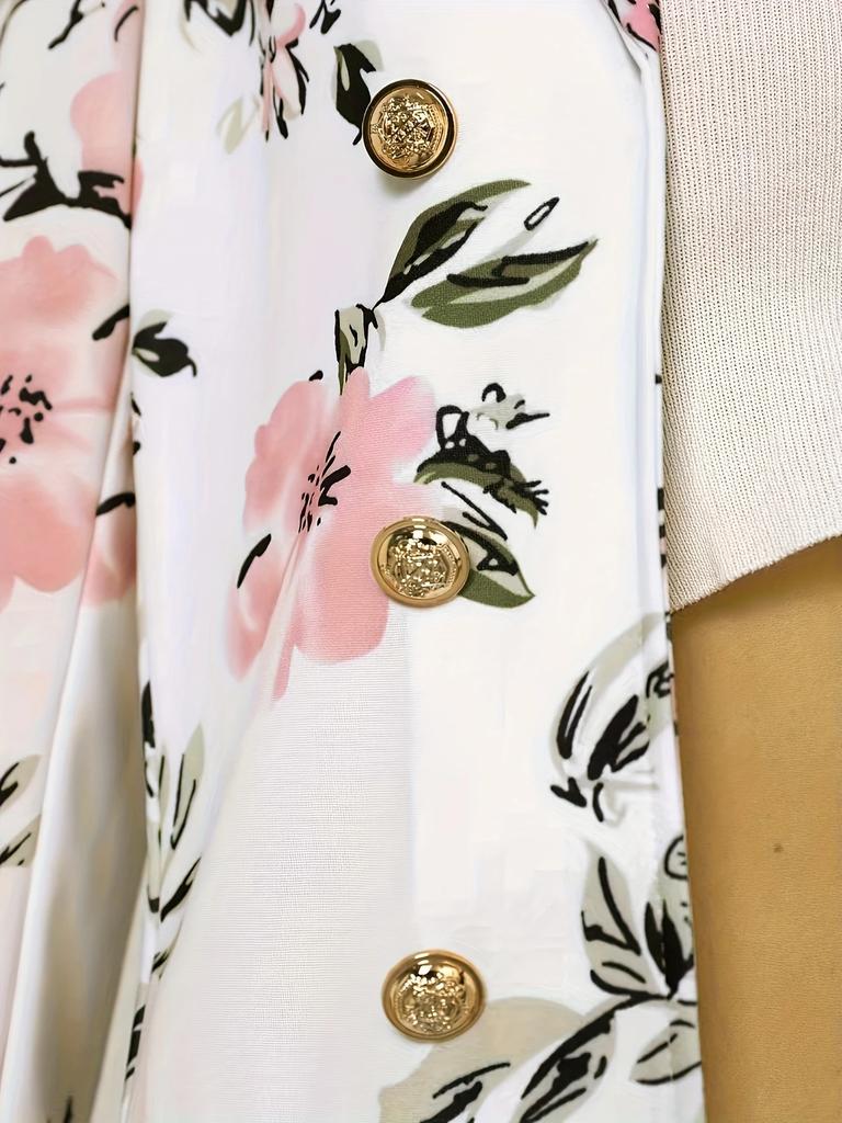 Элегантный костюм-двойка, модный двубортный пиджак с лацканами и мини-юбка с цветочным принтом с высокой посадкой, новый женский костюмный набор