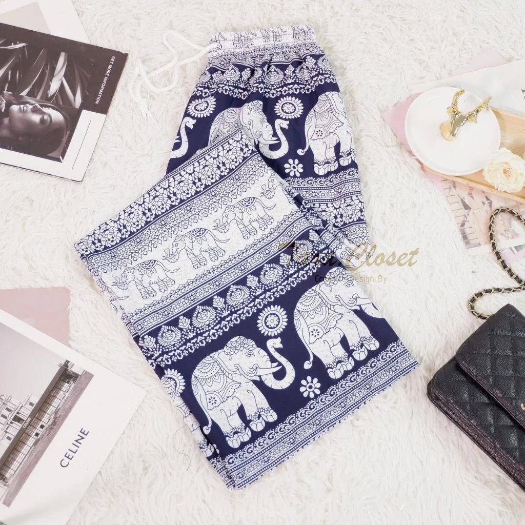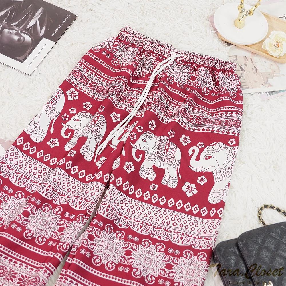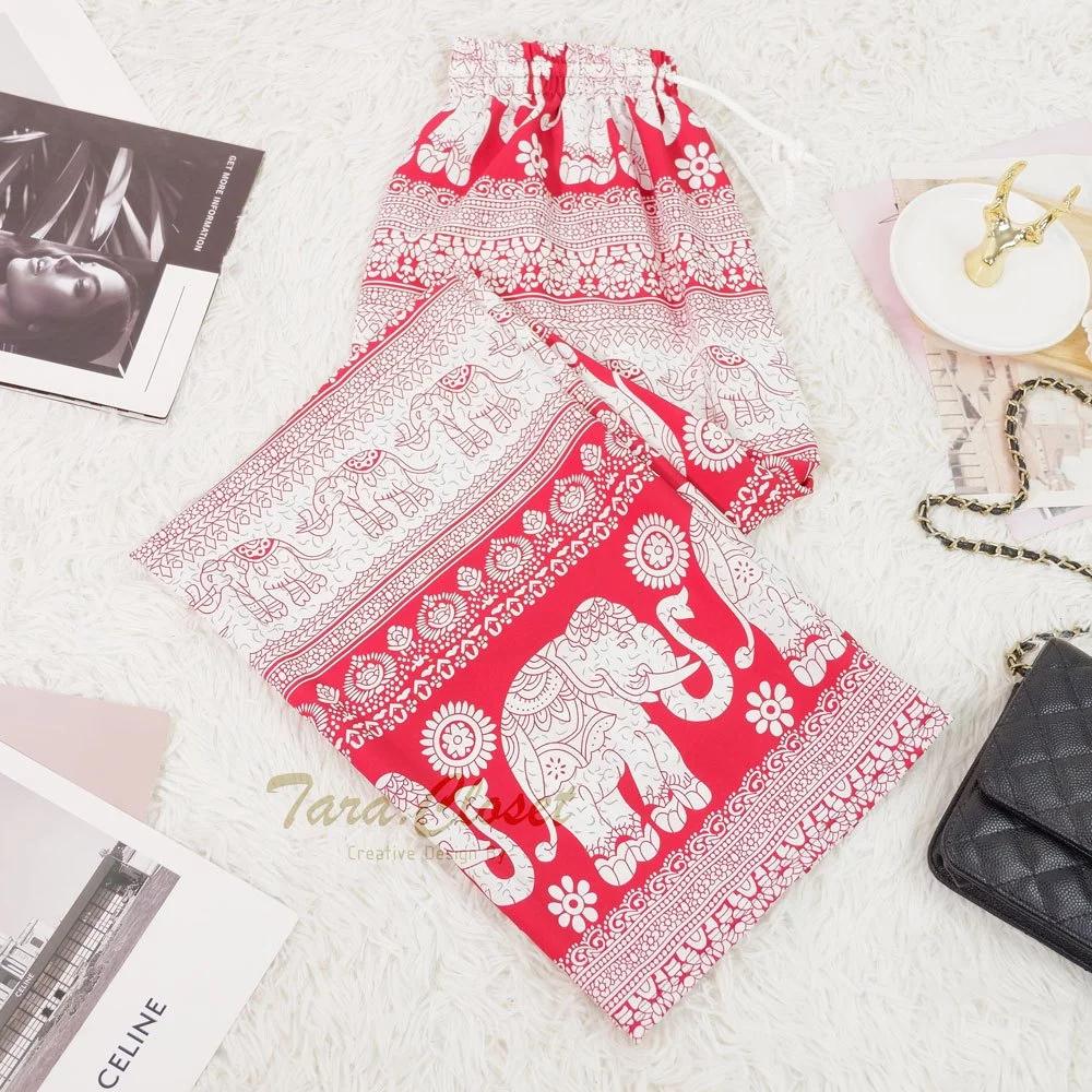 Длинные брюки-слоны Регулируемая эластичная высокая талия Завязка Свободные штанины Унисекс Мужские Женские Принт Таиланд Повседневная уличная одежда Богемный Ретро Винтаж Бохо