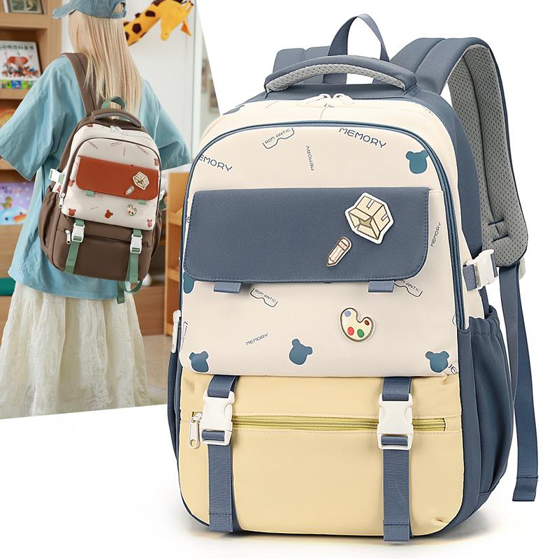 Женский рюкзак с контрастной строчкой, школьный рюкзак для учеников средней школы, легкий рюкзак
