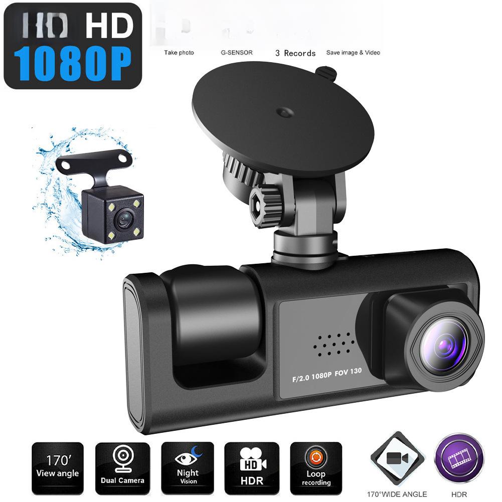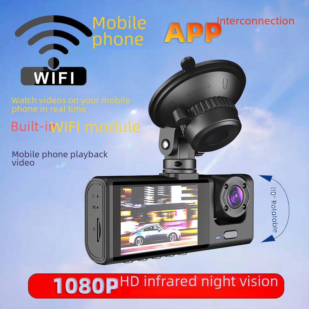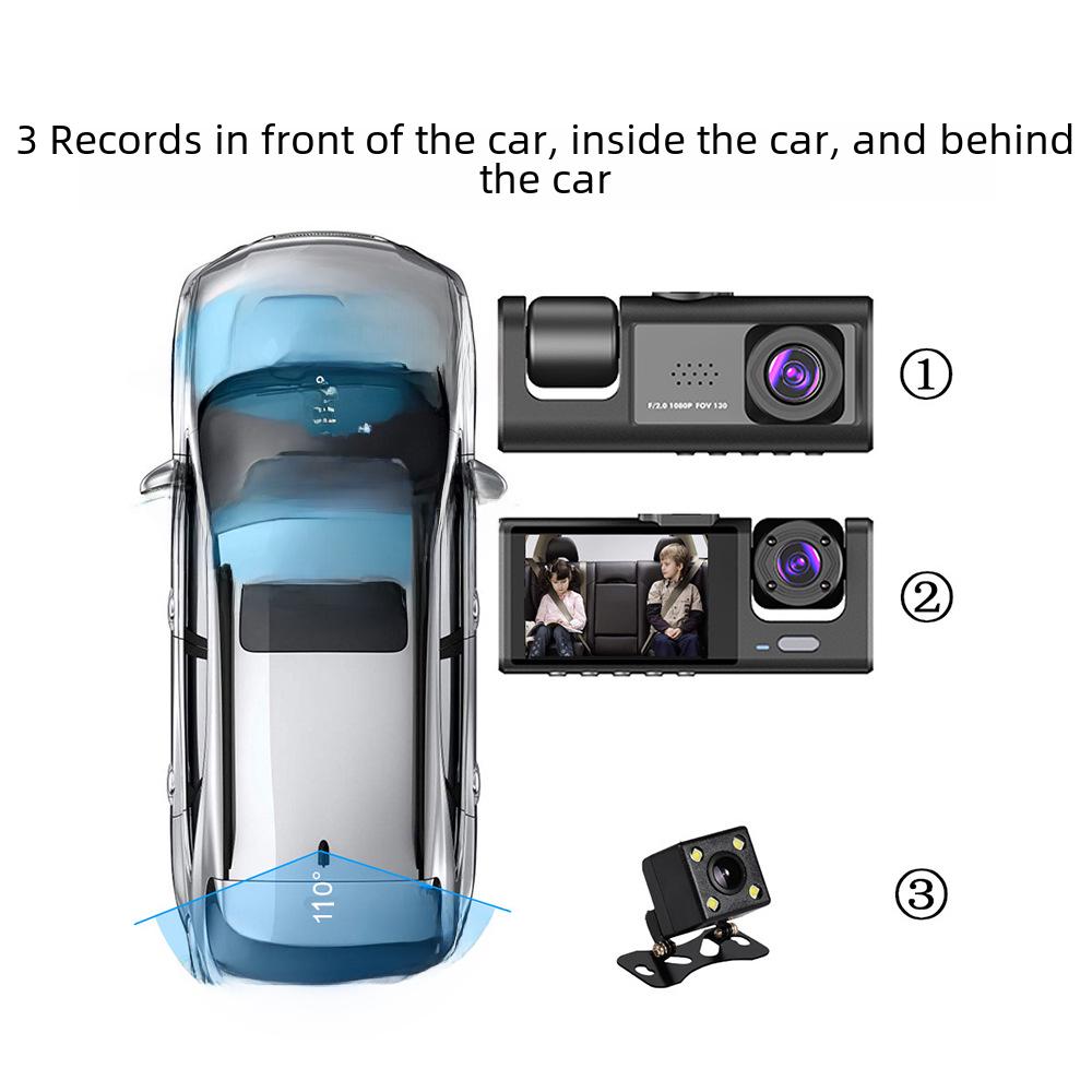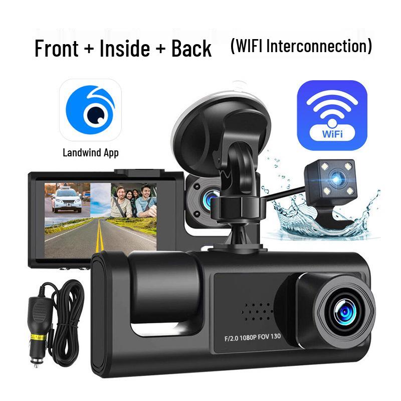 3-линзовый HD видеорегистратор 1080P: Передняя, Внутренняя, Задняя, с многоязычной поддержкой и WIFI