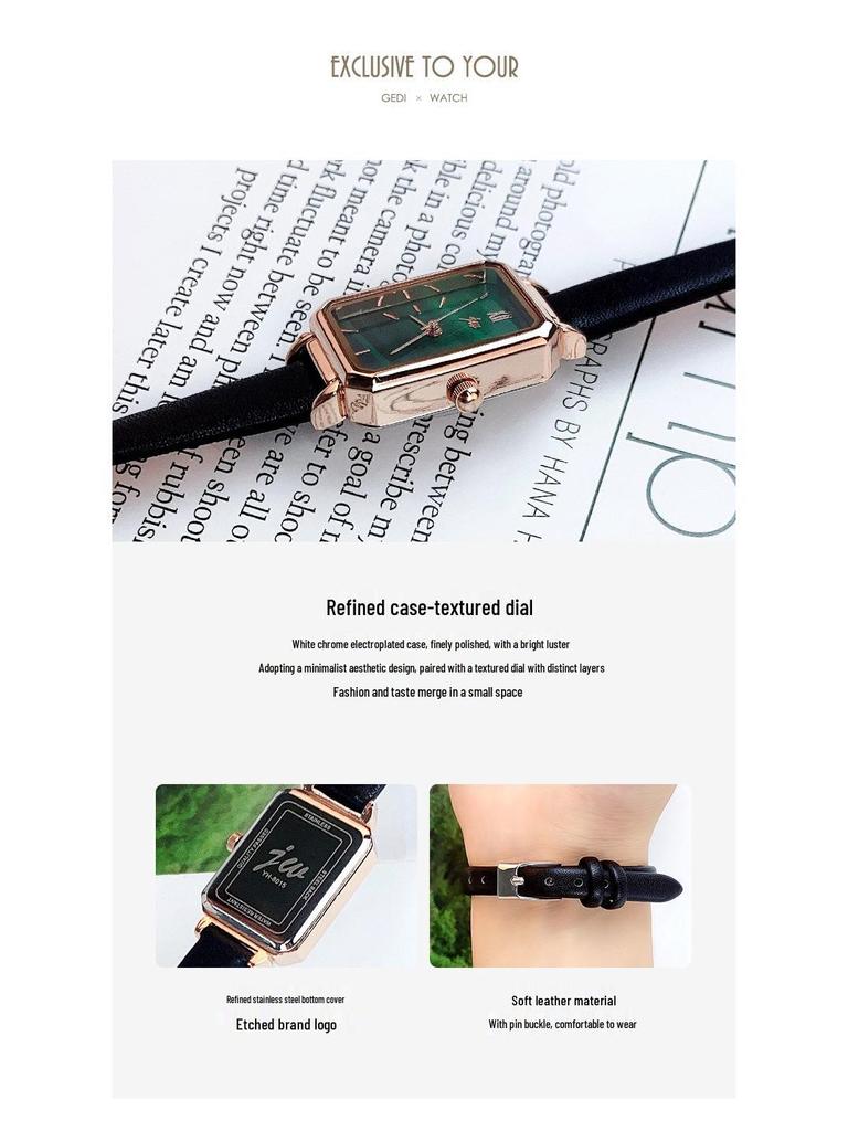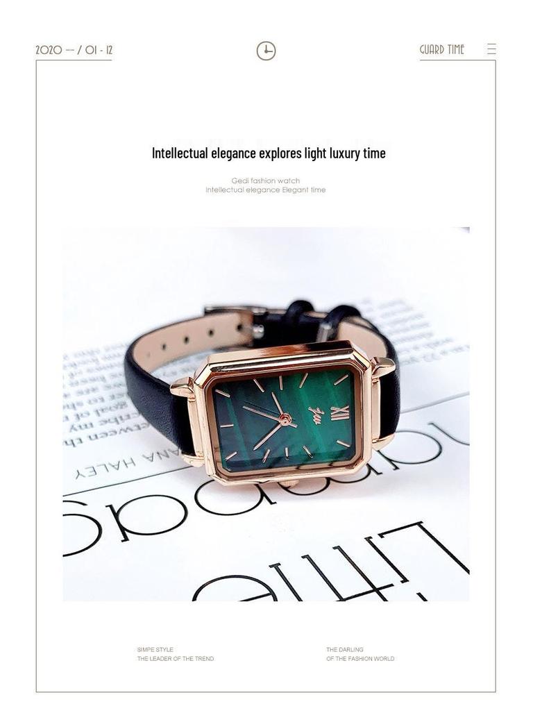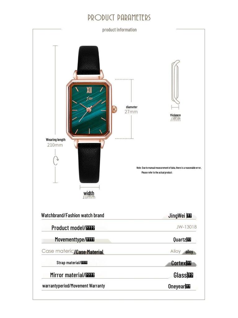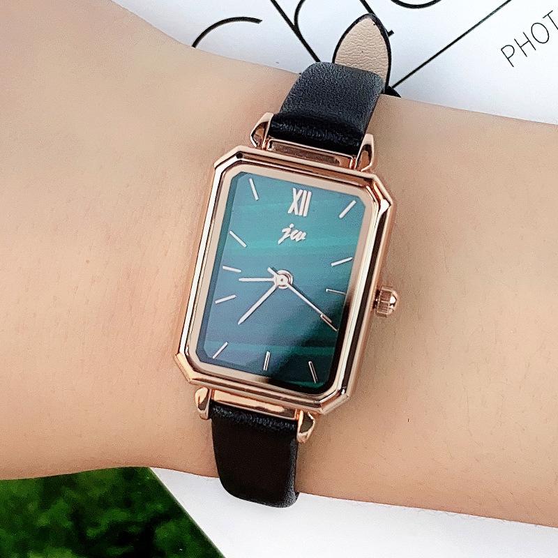 JW Модный инфлюенсер Малахитовая текстура Кожаный ремешок Кварцевые часы с большим циферблатом