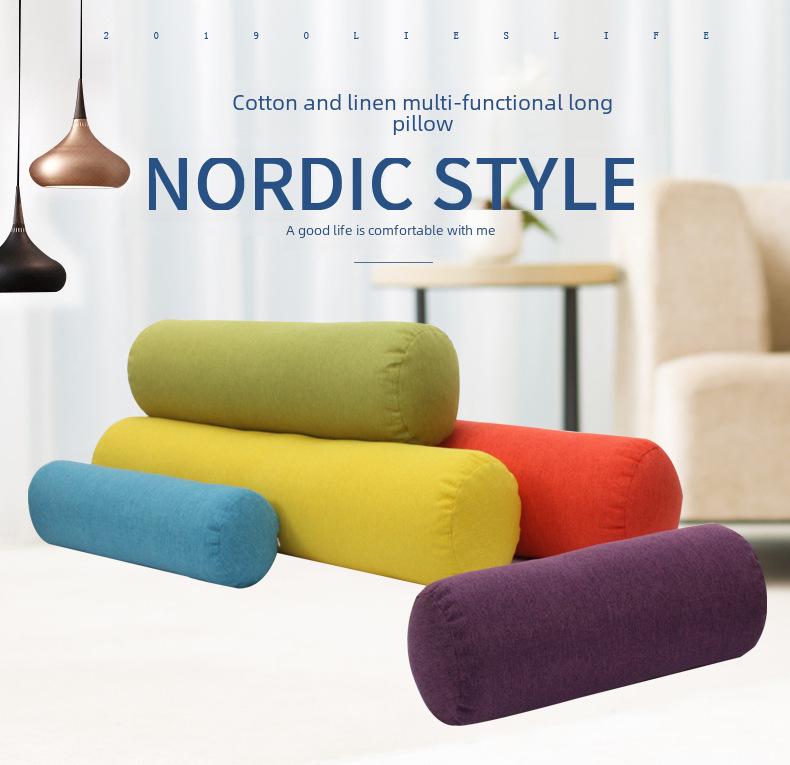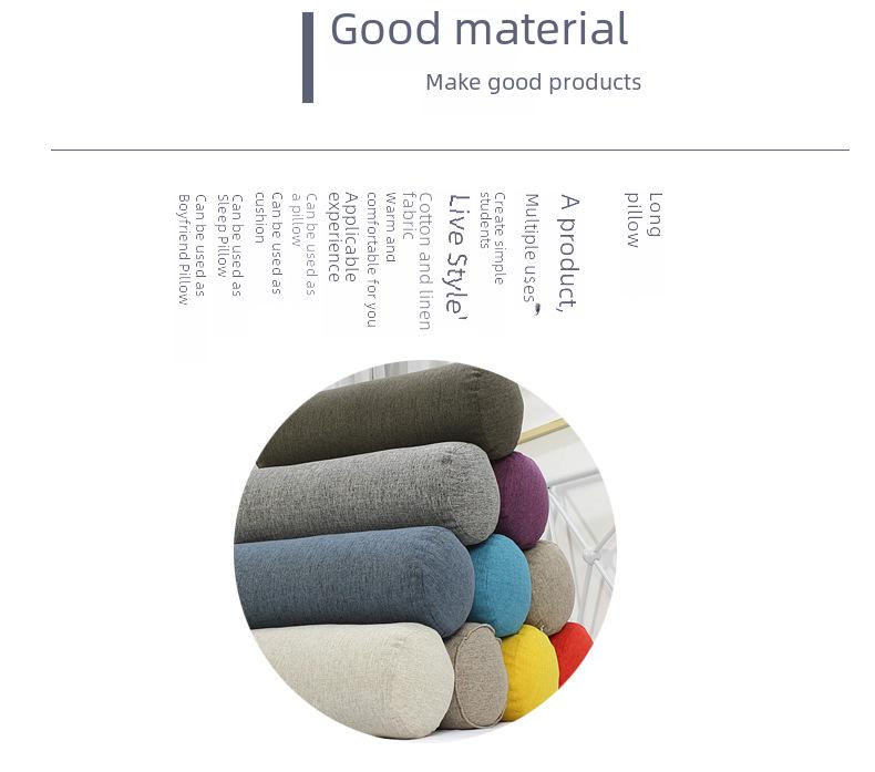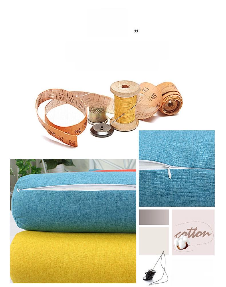 Однотонная хлопково-льняная цилиндрическая подушка-валик - Съемная, моющаяся поясничная поддержка для дивана, кровати или офиса.