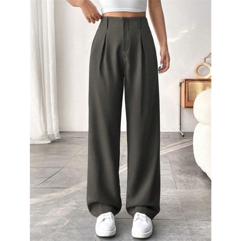 Европейские и американские брюки для通勤 с высокой посадкой и свободного кроя, незаменимые для весны и лета, повседневные брюки с широкими штанинами для женщин