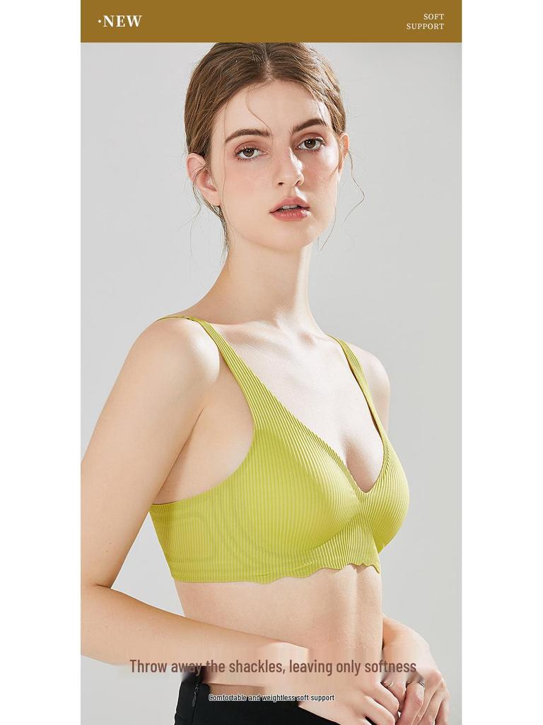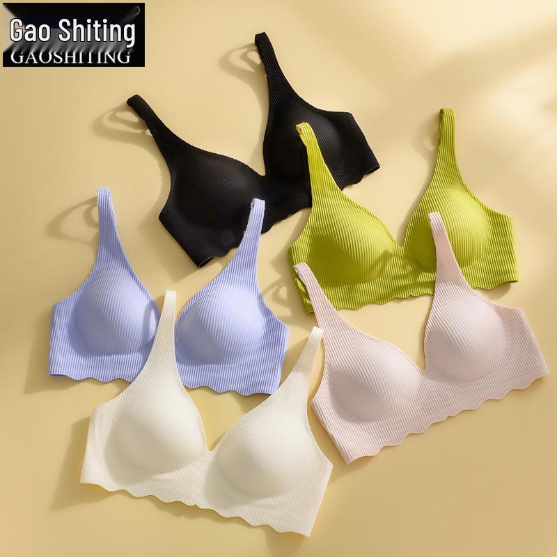 Женский бесшовный бюстгальтер для сна без косточек: Фиксированная чашка, Предотвращающая провисание, Тонкая, Со сборочным эффектом для маленькой груди