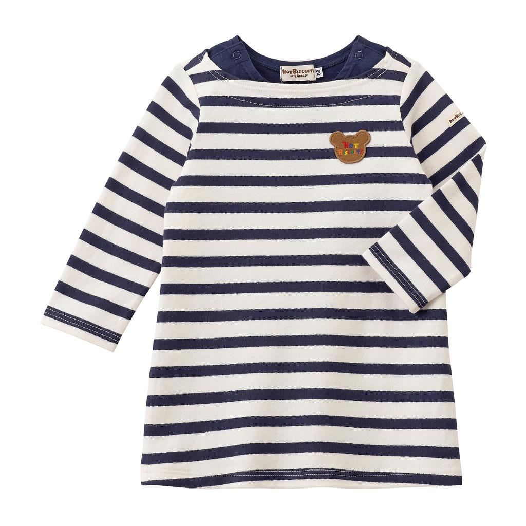 ГОРОШЕК Платье с длинным рукавом для мальчиков и темно-синее x [MIKIHOUSE BISCUITS] для девочек, детская одежда, белое, 90см, 70-1902-492