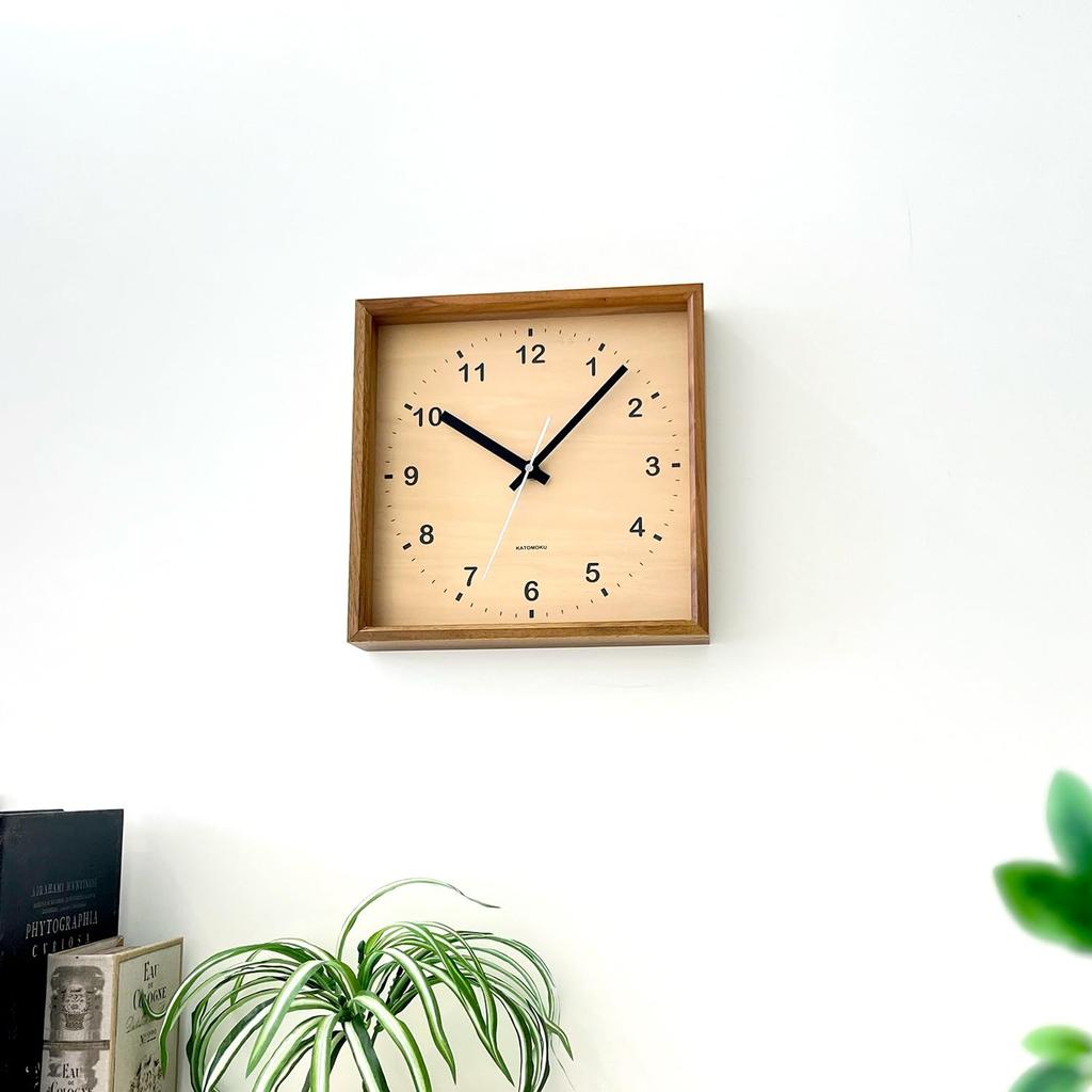 К настенным часам в простом стиле «KATOMOKU» добавлен квадратный тип. Красивая тонкая квадратная деревянная рама была укреплена добавлением процесса жюльен, выражая деликатное, но мощное выражение.. Каждая деревянная рама изготавливается вручную компанией Kato Mokko Co., Ltd.