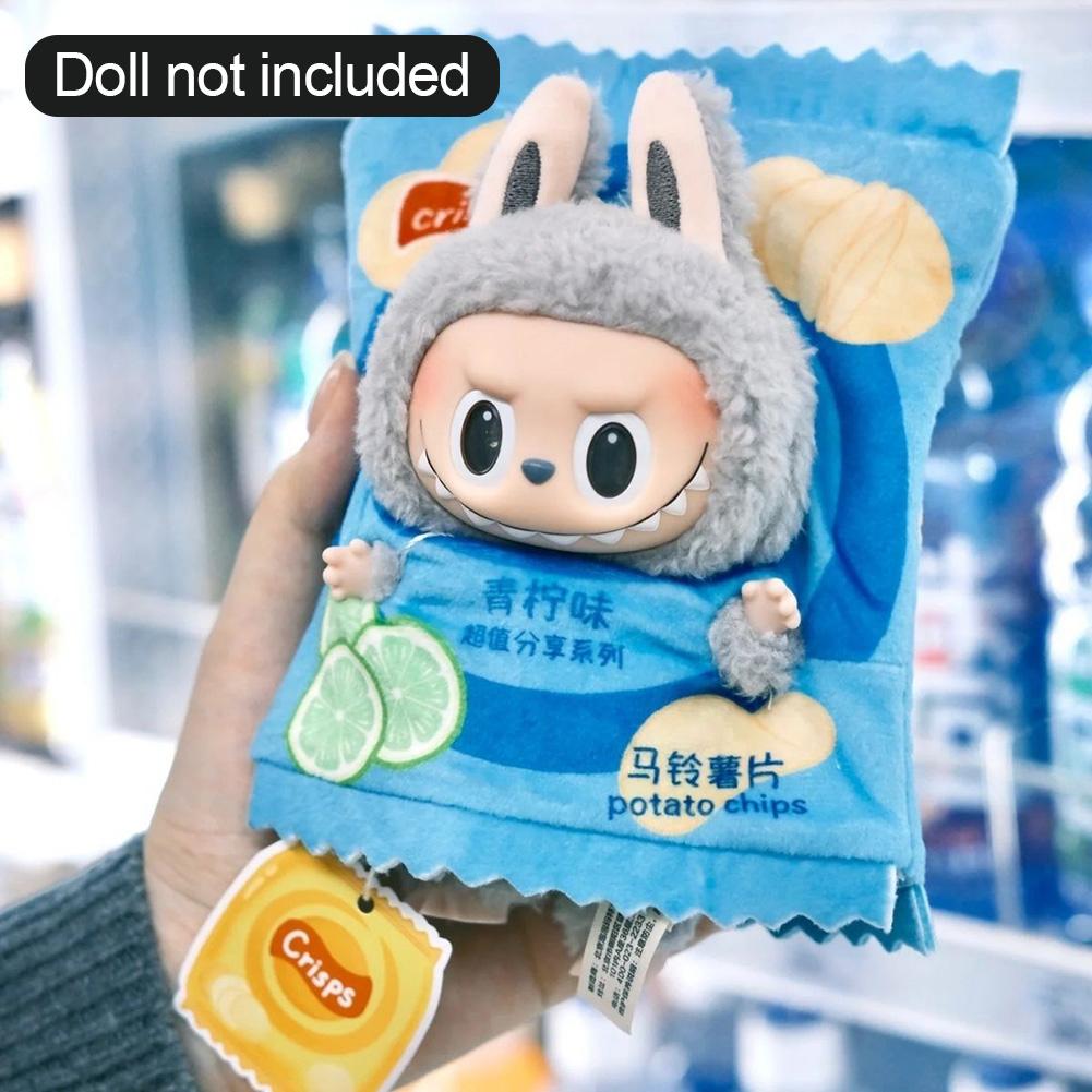 Для 15 см фигурки куклы Labubu The Monsters одежда с упаковкой картофельных чипсов, мультяшная одежда с сердцебиением, одежда-макарон