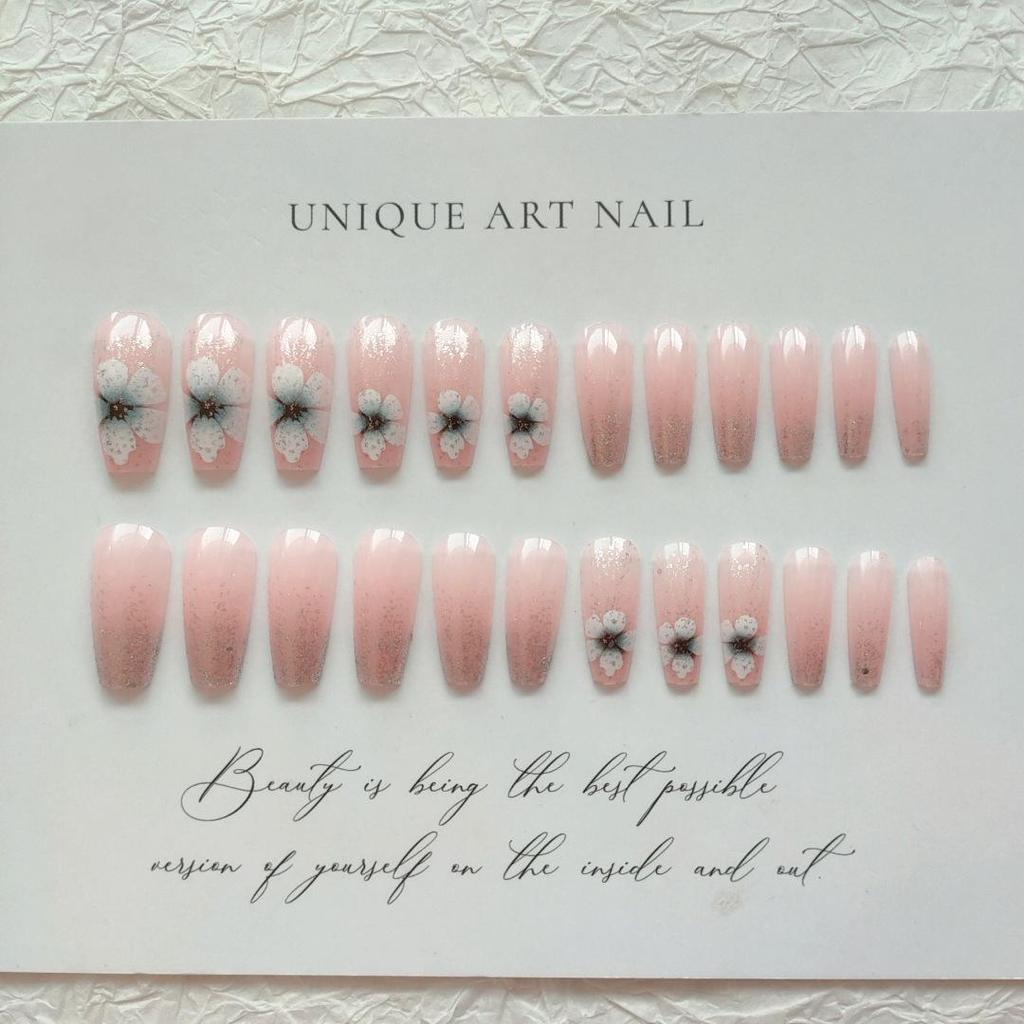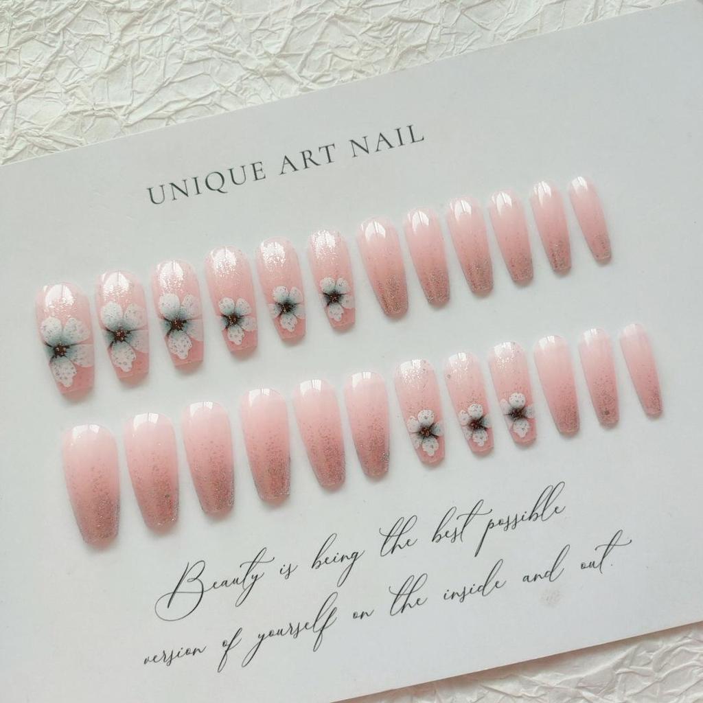 Ретро Камелия Длинные Накладные Ногти - Милые Патчи для Дизайна Ногтей в Стиле Чистого Желания