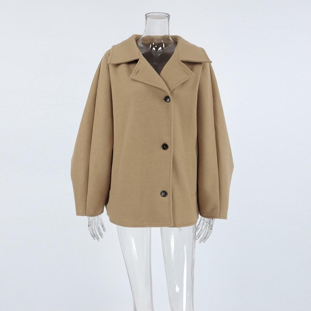 VAYLA Новая верхняя одежда Тренч для женщин Рукав «летучая мышь» Длинное пальто Зимнее Шерстяное пальто Тренч Коричневый Лацкан Средней длины Куртки