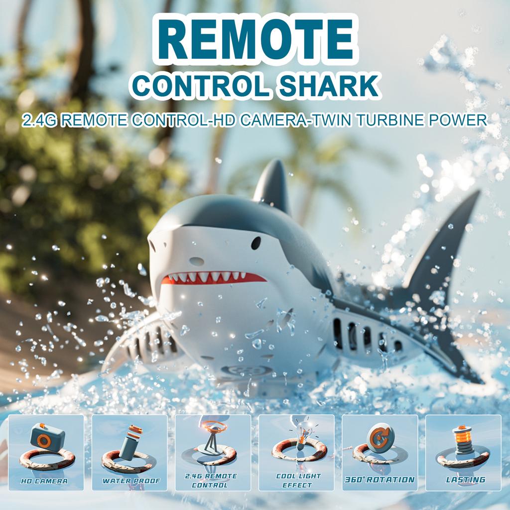 Игрушка акула с дистанционным управлением 2.4G, Высокореалистичная акула с камерой, светодиодной подсветкой и функцией распыления воды