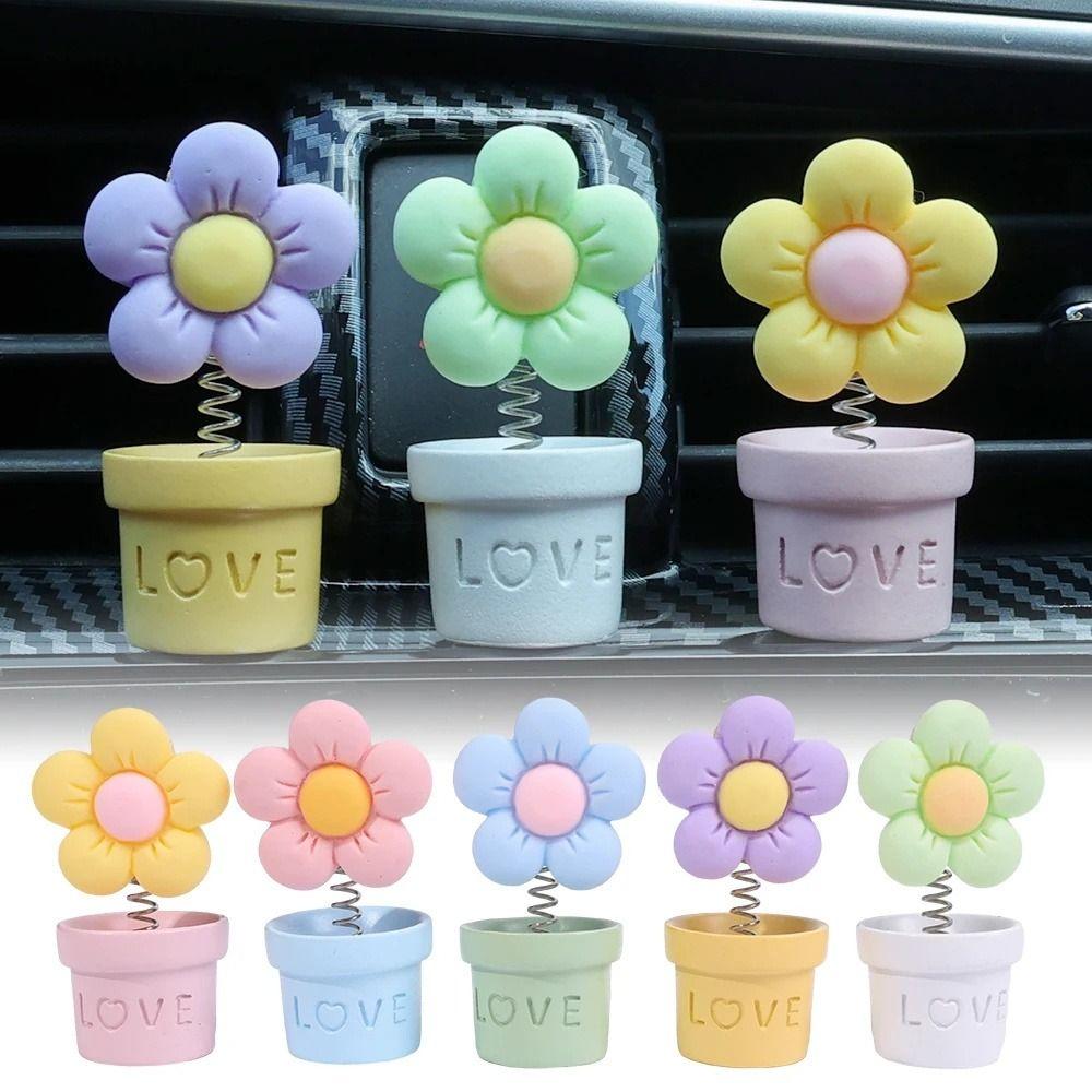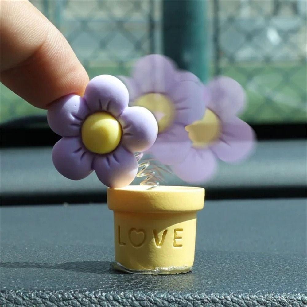 Shake Head Flower Ornament Car Small Flower Bobble Head Ornaments Auto Interior Accessories