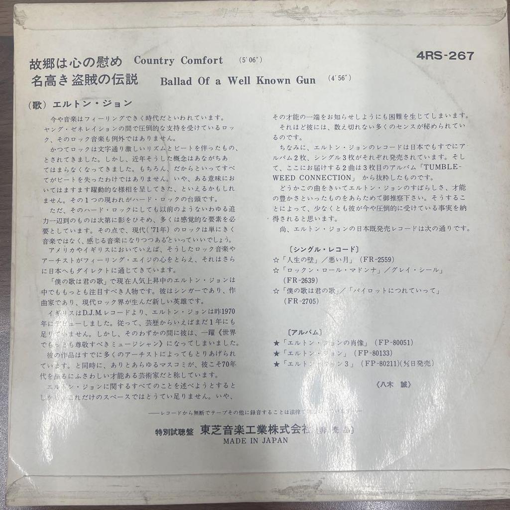 [Б/У] 7-дюймовая сингловая пластинка Элтон Джон / Кантри Комфорт