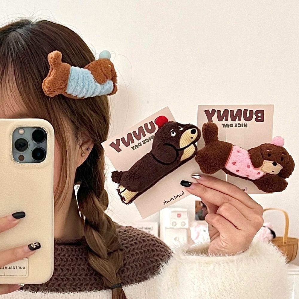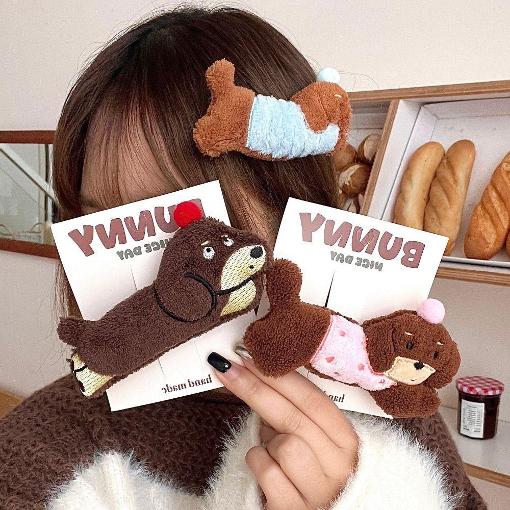 Корейский стиль Милые заколки для щенков Сладкий зажим-уточка Модная милая заколка для волос с собачкой Женщины