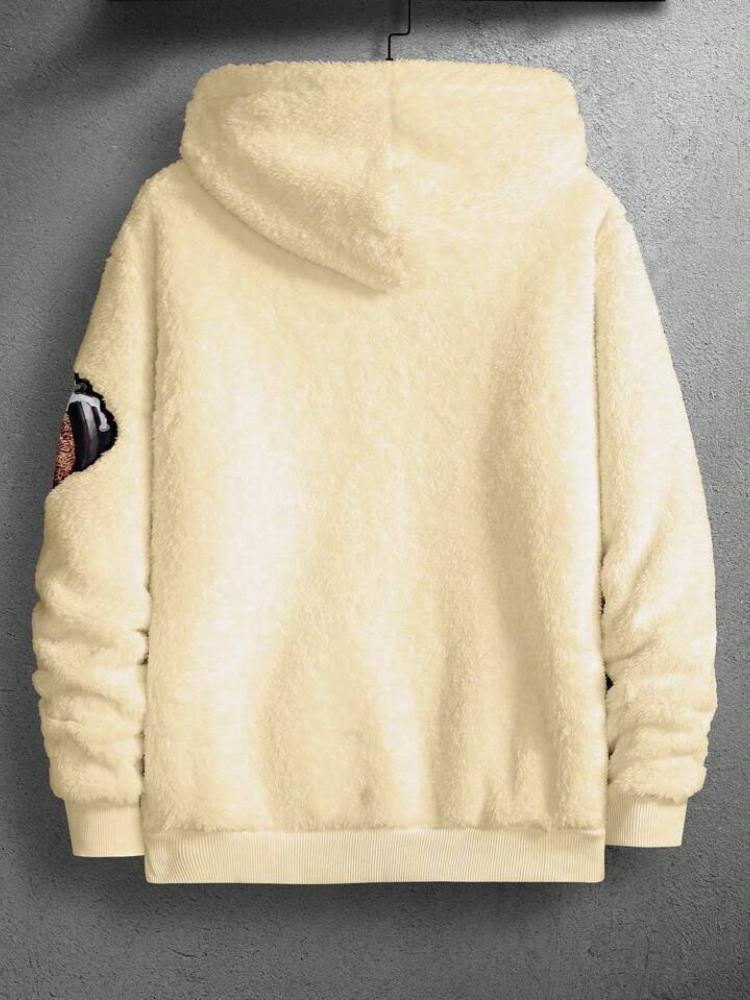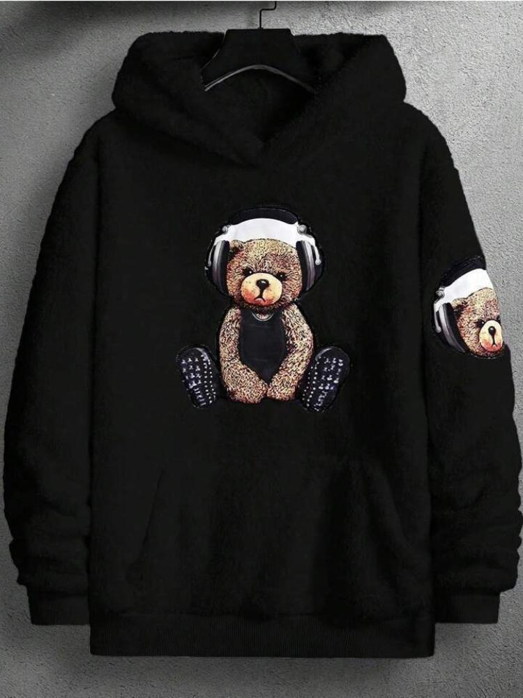 Мужская толстовка с капюшоном на раннюю осень и зиму с принтом плюшевого мишки и крутым меховым стилем