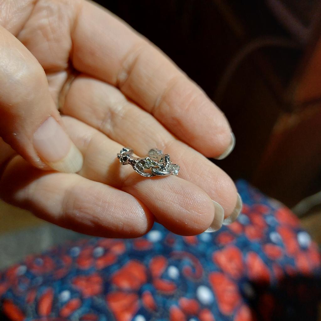 Пришло меньше чем за месяц, упаковано хорошо, кинули в ящик. Украшение на маленькое ухо, для своего пришлось чуть разгибать. Для долгой носки не подходит, а на пару фото - самое оно. После распоковки сильно пачкает руки и ухо, пришлось чистить.