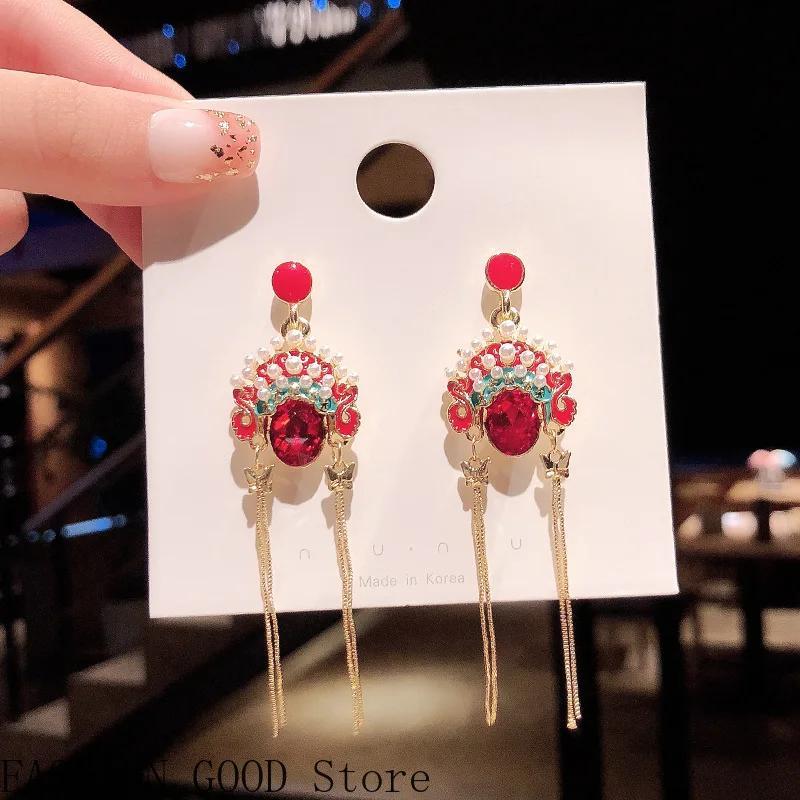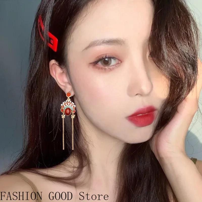1 пара ретро серег в китайском стиле, женские серьги с кисточками, для личности, интернет-знаменитости, с темпераментом, винтажные ювелирные серьги
