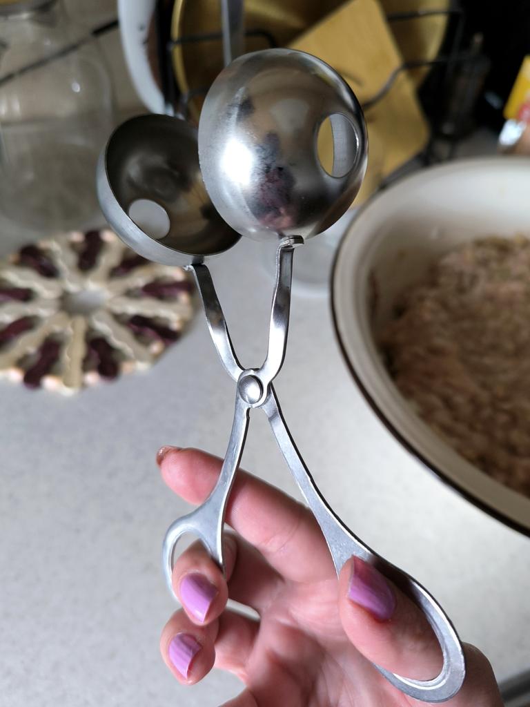 Ложка для фрикаделек или мясных шариков ❤️ Это удобный кухонный инструмент, предназначенный для формирования однородных по размеру фрикаделек, тефтелей или других шариков из мясного фарша, теста или даже мороженого. Приспособение состоит из двух полусфер и ручек-ножниц. Это позволяет легко открывать и закрывать инструмент. Изготовлен из нержавеющей стали, что обеспечивает долговечность, гигиеничность и устойчивость к коррозии. Металлическая конструкция также облегчает чистку. Ручки имеют форму кольца, что обеспечивает удобный и надежный захват, похожий на ножницы. Удачных покупок ❤️ Ваша Вика 😊
