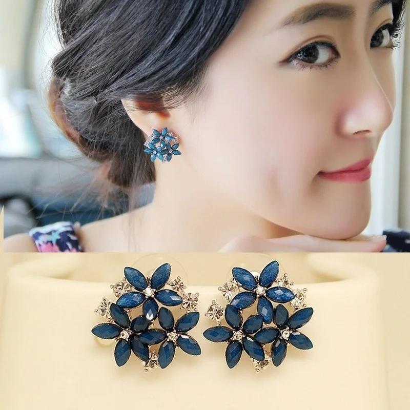 Корейская версия Новые серьги нежного цвета с милыми маленькими свежими цветами, цирконом, сверкающими бриллиантами, преувеличенные модные серьги, подчеркивающие темперамент