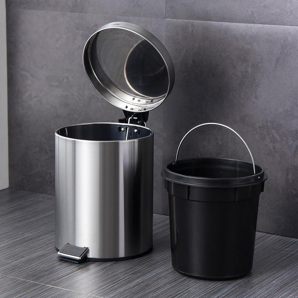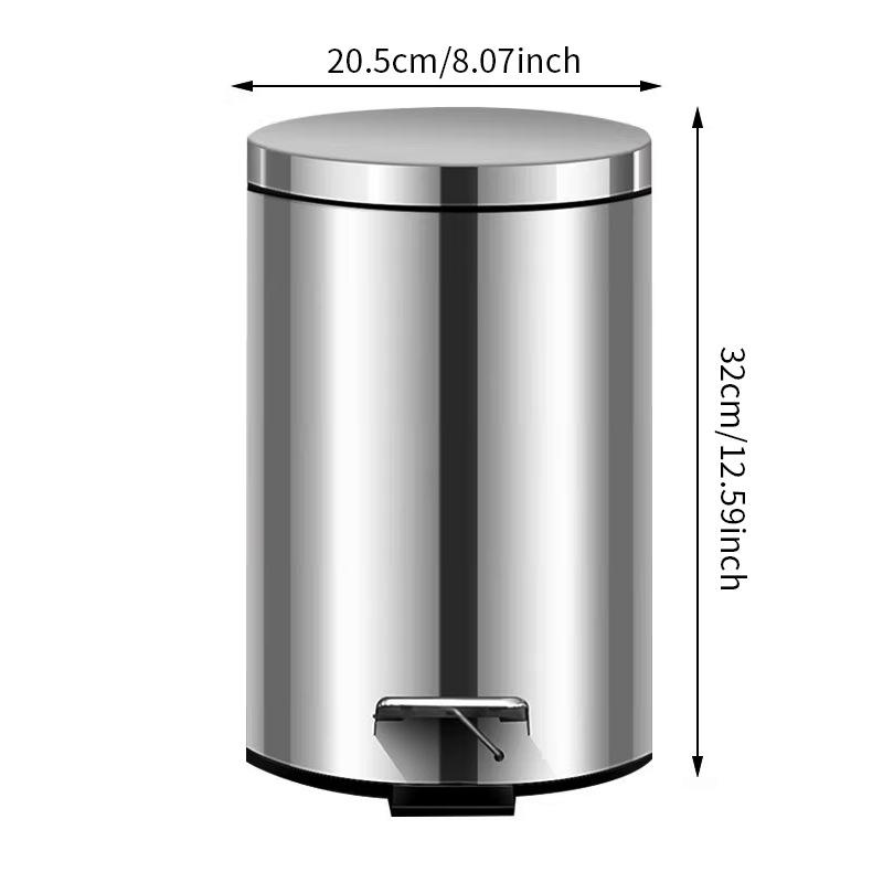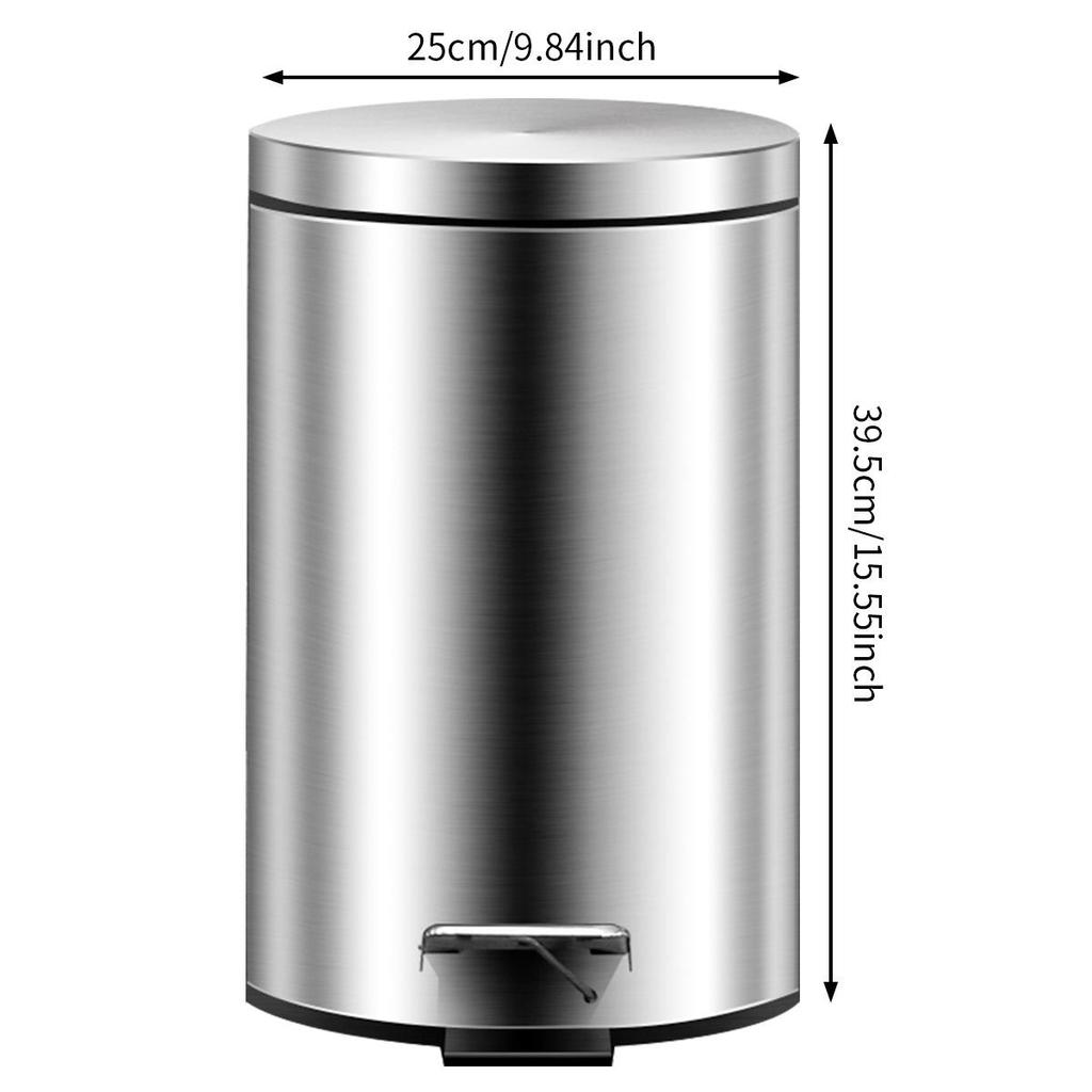 Мусорное ведро из нержавеющей стали с откидной крышкой: Бесшумное, с плавным закрыванием, мусорное ведро с педалью для ванной комнаты или кухни.