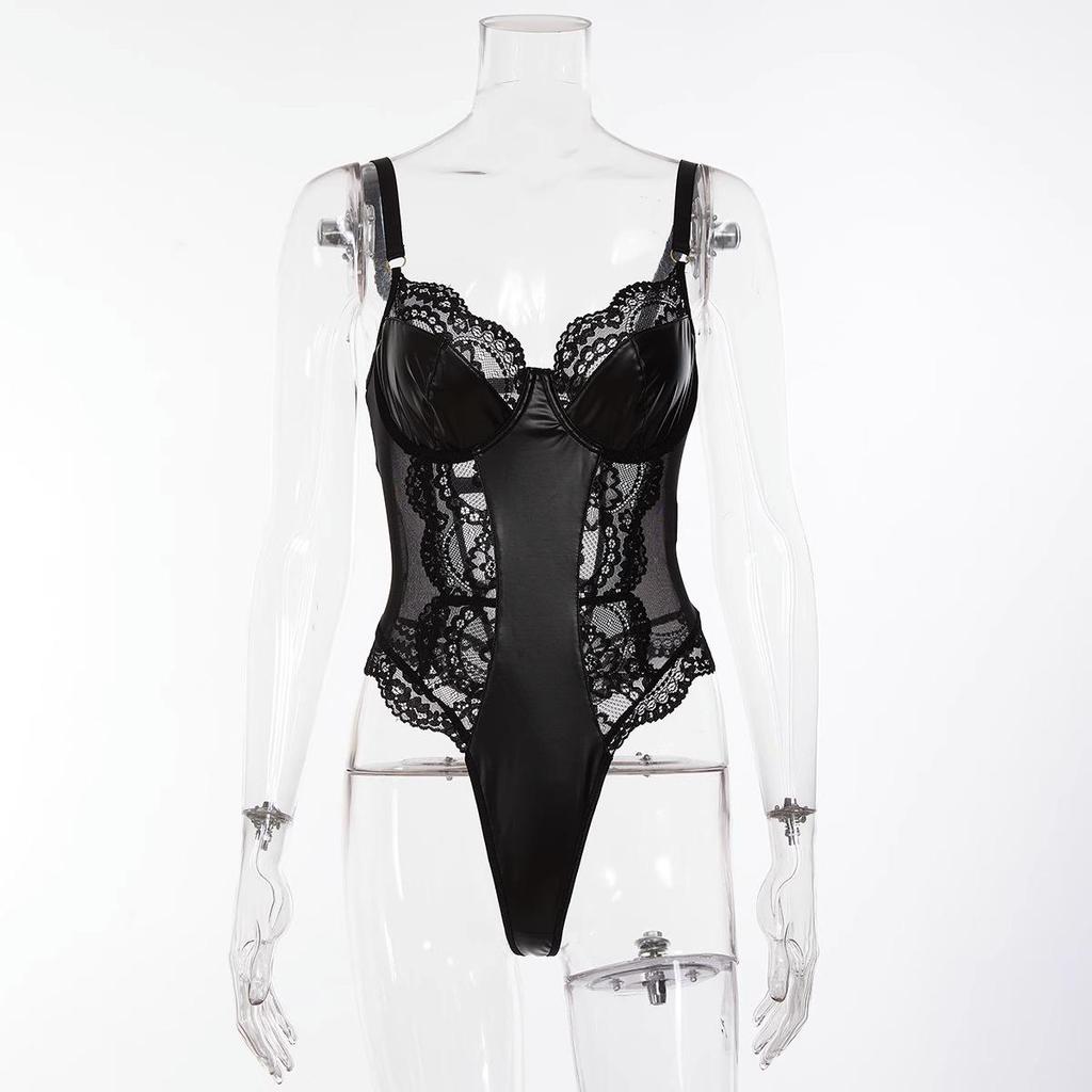 Европейский и американский лаковый боди на шнуровке - Женский сексуальный комплект нижнего белья