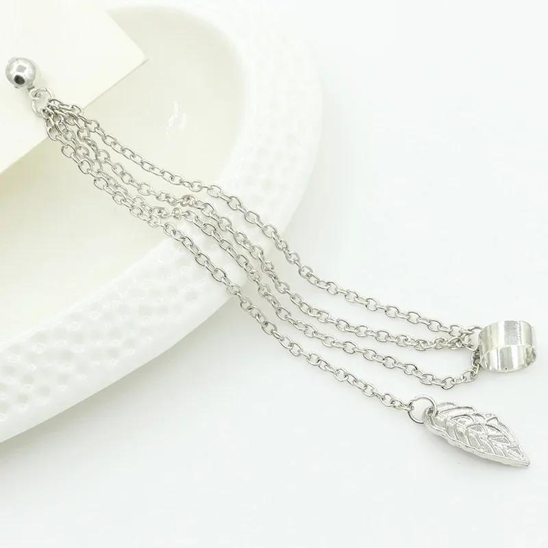 Модные металлические серьги-клипсы с кисточками в виде листьев, персонализированные серьги-кисточки, односторонняя клипса для ушей, модные украшения для девушек, многослойные серьги