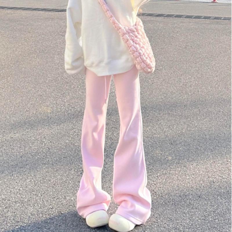 Новые брюки в стиле колледжа, мягкие, клейкие, розовые, женские, с высокой талией, универсальные, ниспадающие до пола, повседневные