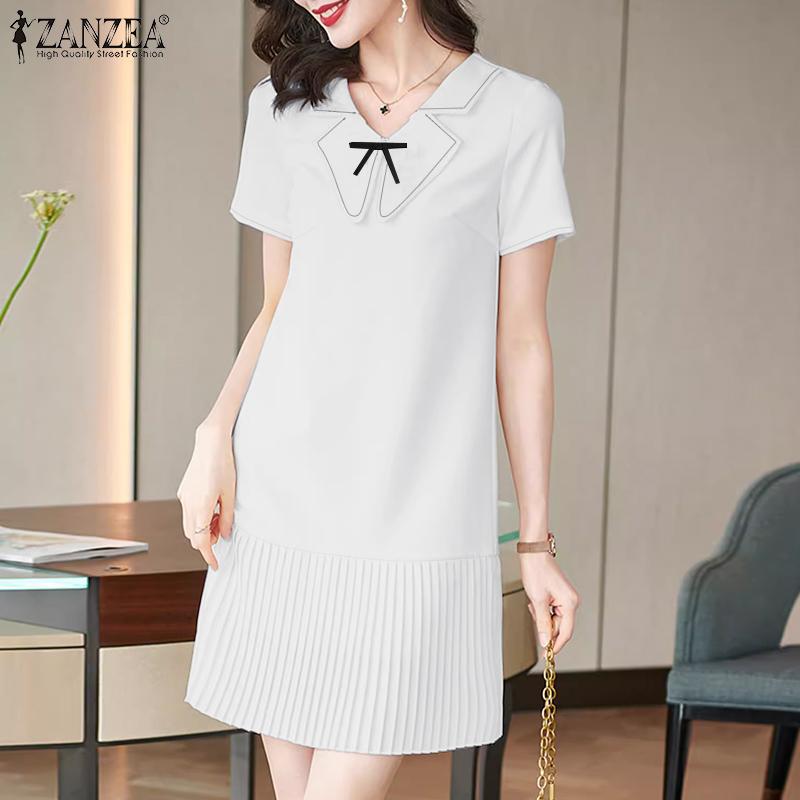 ZANZEA Женское летнее повседневное платье с кукольным воротником и короткими рукавами — купить товар онлайн с бесплатной доставкой по всему миру!