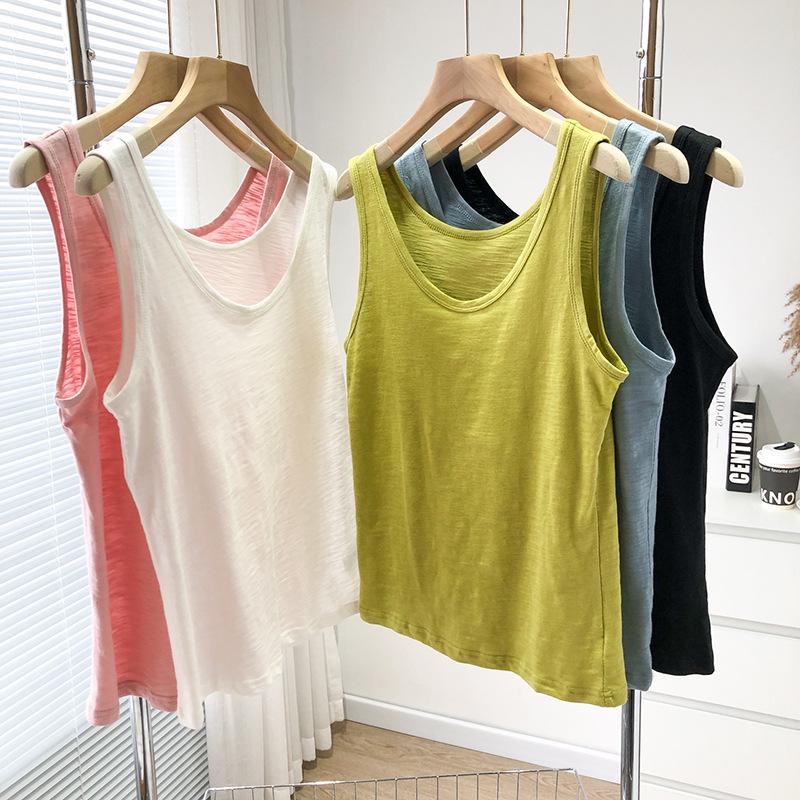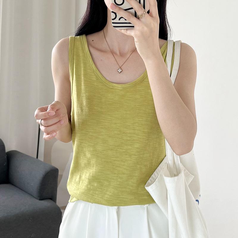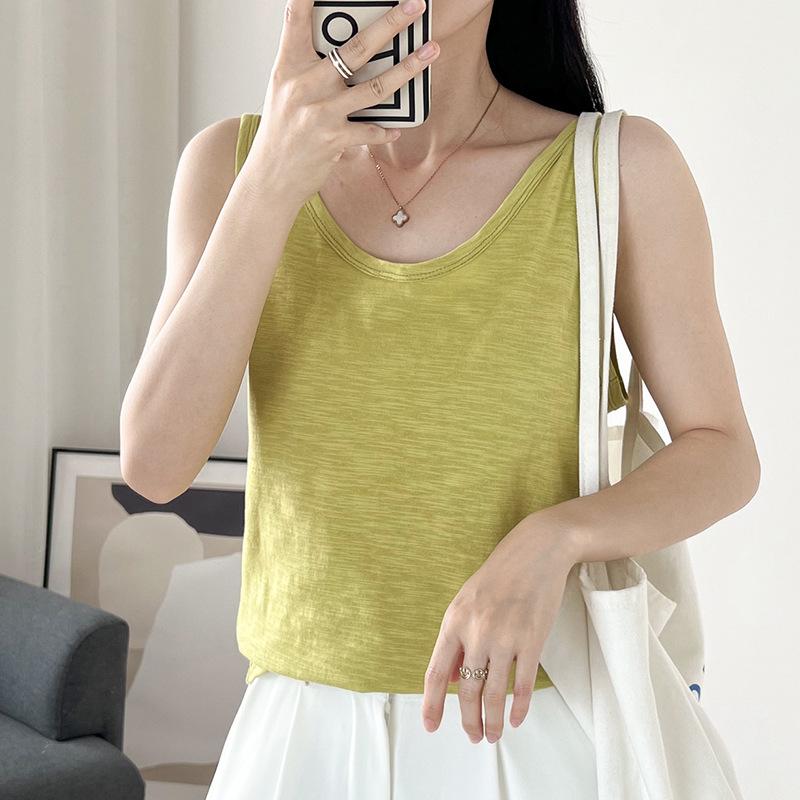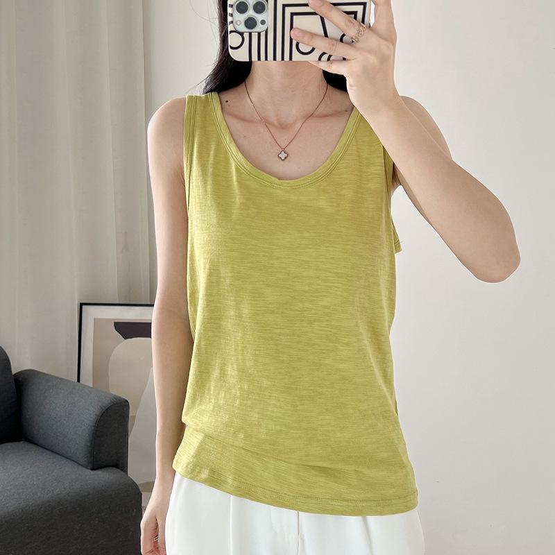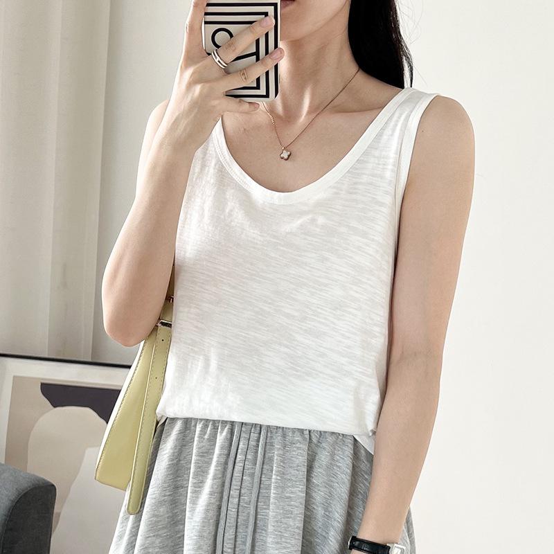 Женская майка с U-образным вырезом из бамбукового хлопка: 2024 Свободный крой, Закрывает подмышки, Летняя одежда из чистого хлопка